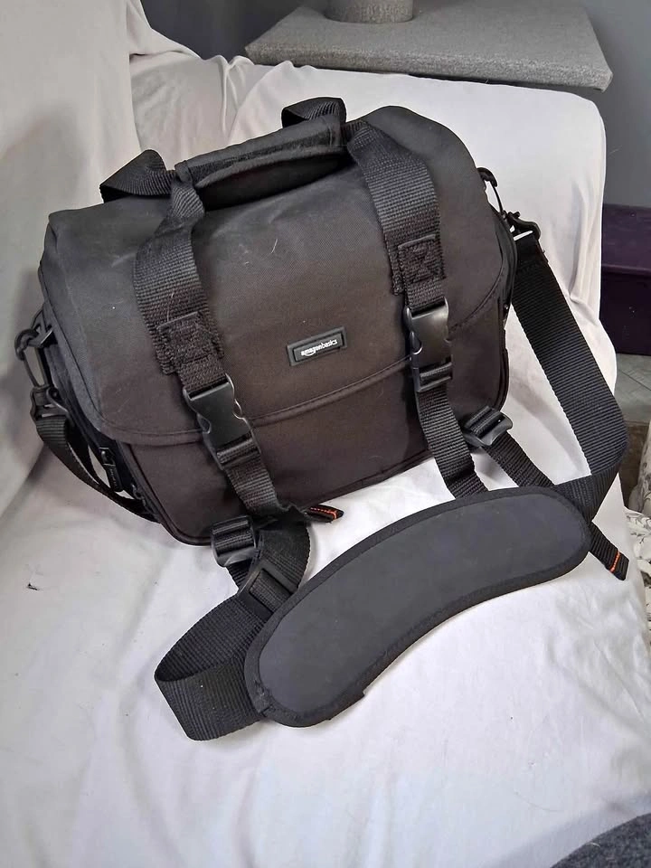 Brand new, never used. Amazon Basics black camera bag with padded shoulder strap. See pics for pocket details. Pick up in south Ajax.