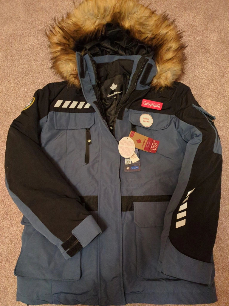 Selling a brand new Canadiana ladies winter jacket in size small It still has the original tag, which shows it originally retailed for $159.97. Great for the cold Canadian winters!
