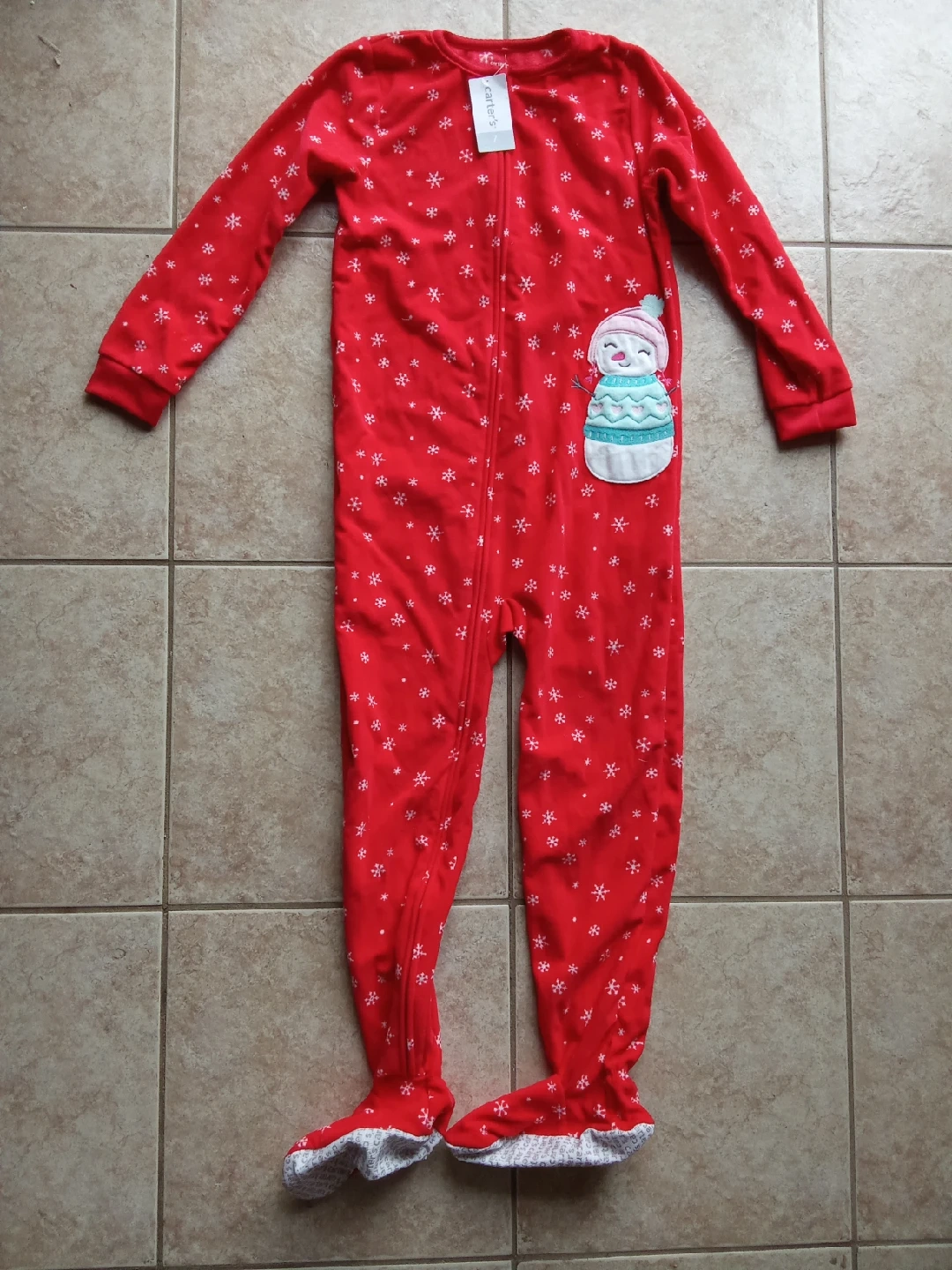 126Keep your little one cozy with these adorable Carter's footed pajamas! They're a vibrant red with a cute snowflake pattern and a sweet snowman applique. These are a size 7 and perfect for keeping warm during the colder months Perfect as Christmas gift π