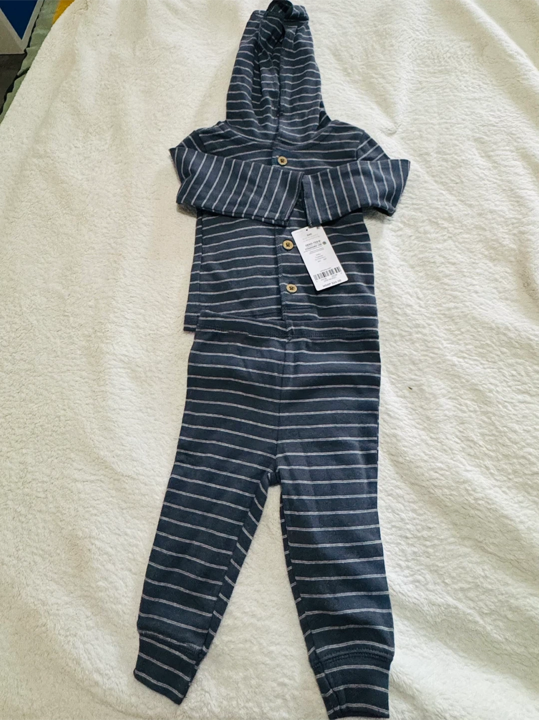 68This is a brand new Carter's striped hooded outfit. It's super cute and comfy for your little one!