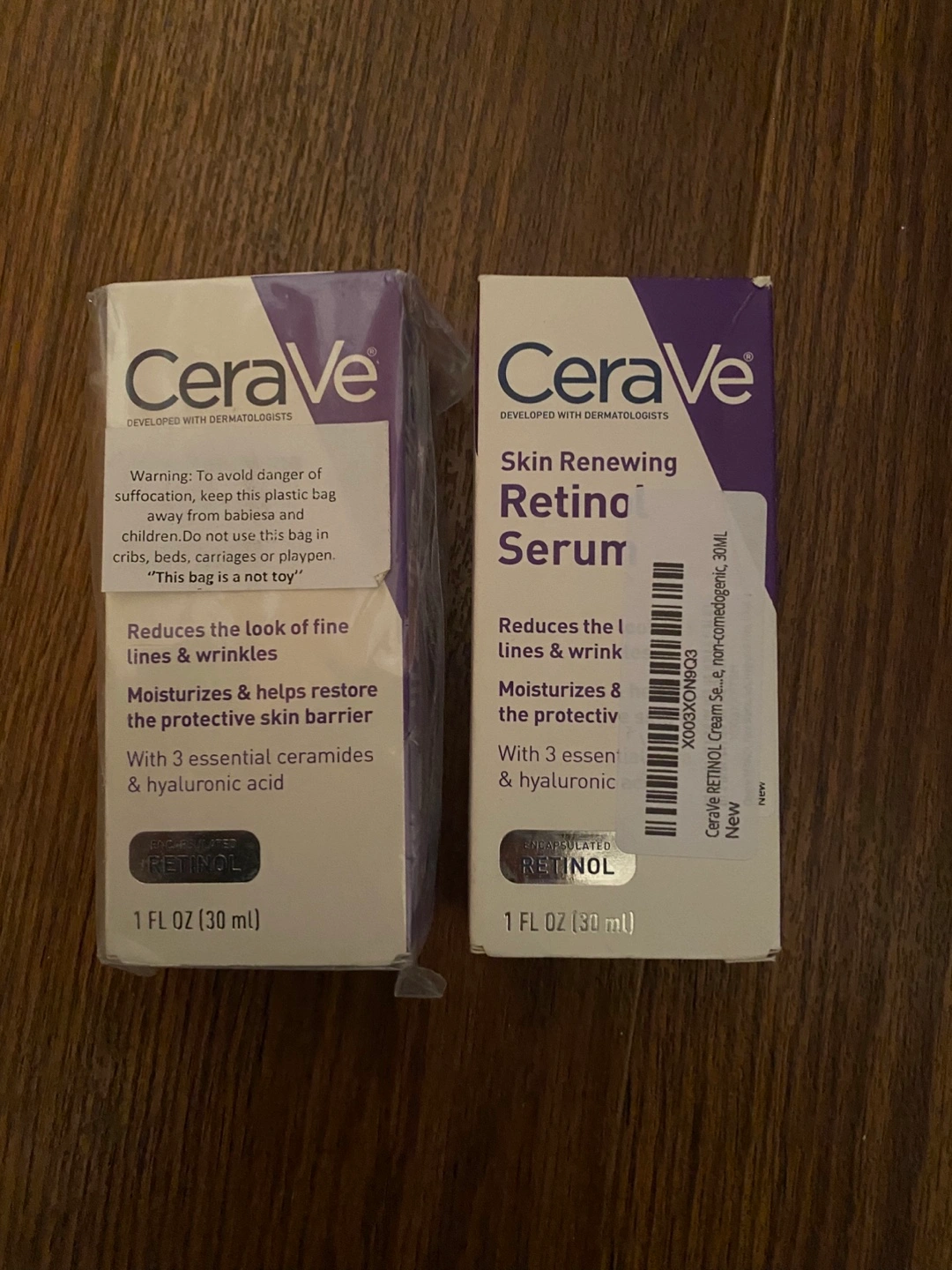 Brand new CeraVe Skin Renewing Retinol Serum. It comes in a 1 fl oz (30 ml) size. This serum reduces the look of fine lines and wrinkles, and moisturizes and helps restore the protective skin barrier with 3 essential ceramides and hyaluronic acid