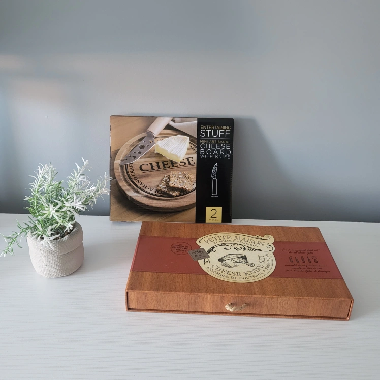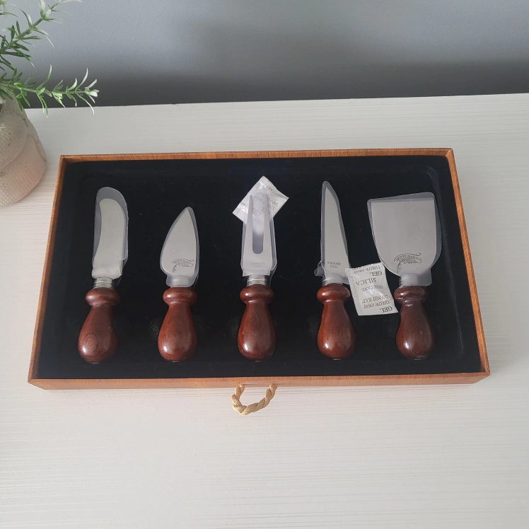 94I'm selling these Premium cheese knives!💎 -Spreader -Hard cheese knife -Small spreader -2x spear Knives -Flat knife -Cheese board -Premium Rosewood knives -Strong Stainless Steel blades -Durable and Attractive for any occasion -Cheese board made of Elegant Acacia Wood -$50 value! Whether you're hosting or simply having a cozy night in, these are the pieces for you! Have a delightful experience like no other for only $10! -Pickup today!🚀 -Audley Rd and Bayly St!📍 -Checkout my reviews!⭐️ Let me know if you have any questions or offers. Thanks!