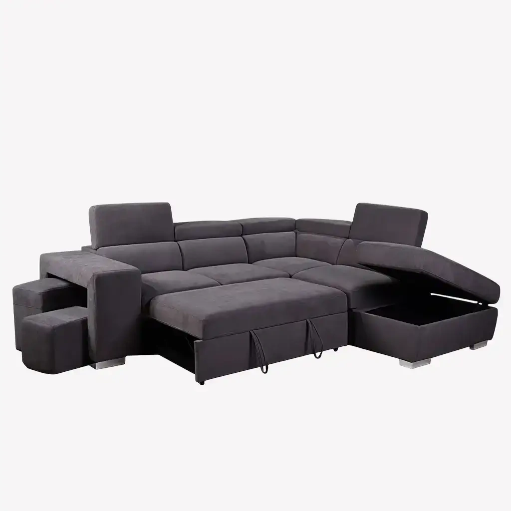 20We sell Pullout Bed, Sleeper couches, dining tables, kitchen tables, dinette sets, bedroom sets, single beds, futon, sofabed, sectional beds, sleeper couches, bunk beds, recliner sets, leather sofas, table lamps, pull out bed, sleeper sofa, twin bed mattresses, roll mattresses, memory foam mattresses, queen bed frame, metal bed frames, accent chairs, coffee tables, end tables, night tables, console table, sofa tables dining chairs, wooden tables, king bed frame kids bed children’s furniture, floor lamp, wall art, paintings, rugs, etc…… Vibe Fabric Upholstered Sectional Sofa Bed With USB Charging Ports - Grey Sturdy Construction: Built to withstand daily use, the robust frame is crafted from premium rubber wood and plywood. Corner Chaise Lounge: The left-hand-facing (LHF) chaise includes a lift-up storage compartment Convenient Transition: A pull-out mechanism allows for a seamless transformation from a stylish sectional to a comfortable sleeper sofa. Small Ottomans: Two compact ottomans are included, offering versatility as footrests or additional seating. USB Charging Ports: Integrated USB charging ports keep your devices powered up while you relax Dimensions (W x H x D): 103" x 32.28" - 39.76" x 87.4" (Approximately) Order From Our WEBSITE and Get It Delivered to Your Home www.cosmichomescanada.com *****WhatsApp: 226-883-3111***** $$DELIVERY AVAILABLE AT ADDITIONAL COST $$\\ *********CASH ON DELIVERY IS ALSO AVAILABLE PLEASE CONTACT**********