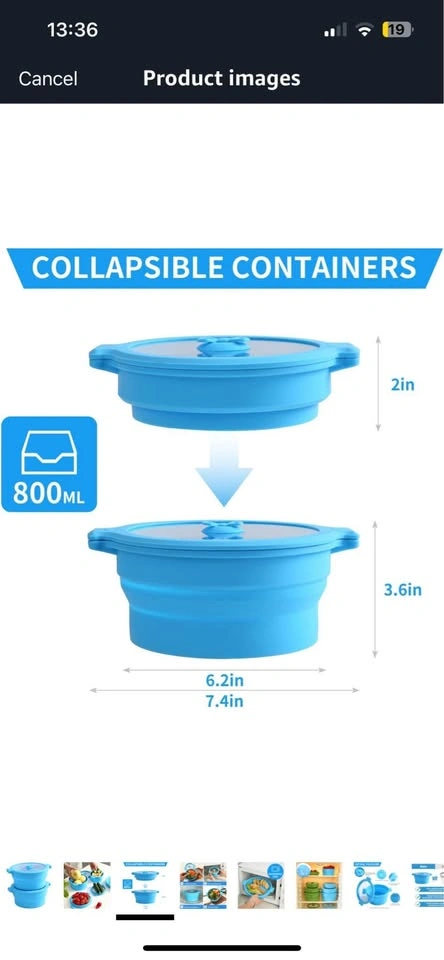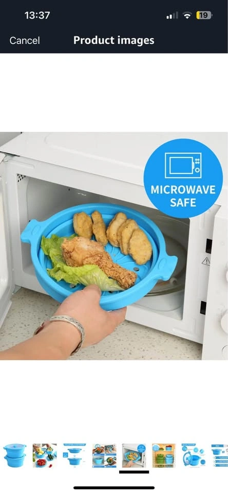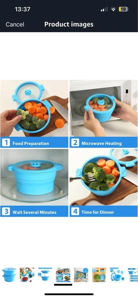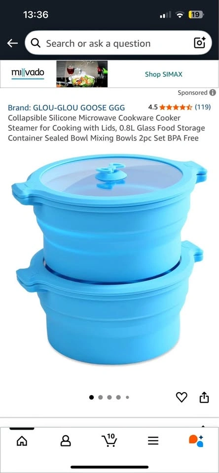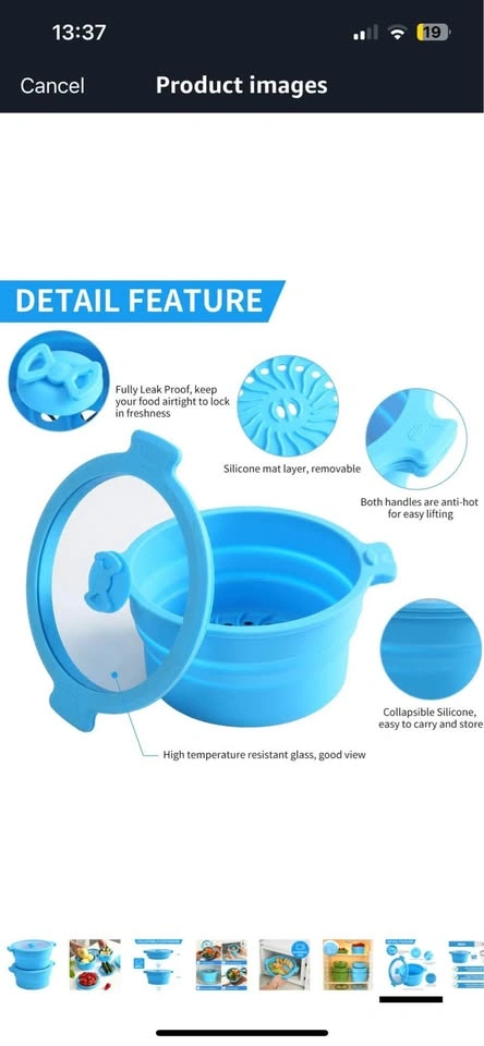 60New Collapsible Silicone Microwave Cookware Cooker Steamer for Cooking with Lids, 0.8L Glass Food Storage Container Sealed Bowl Mixing Bowls 2pc Set BPA Free