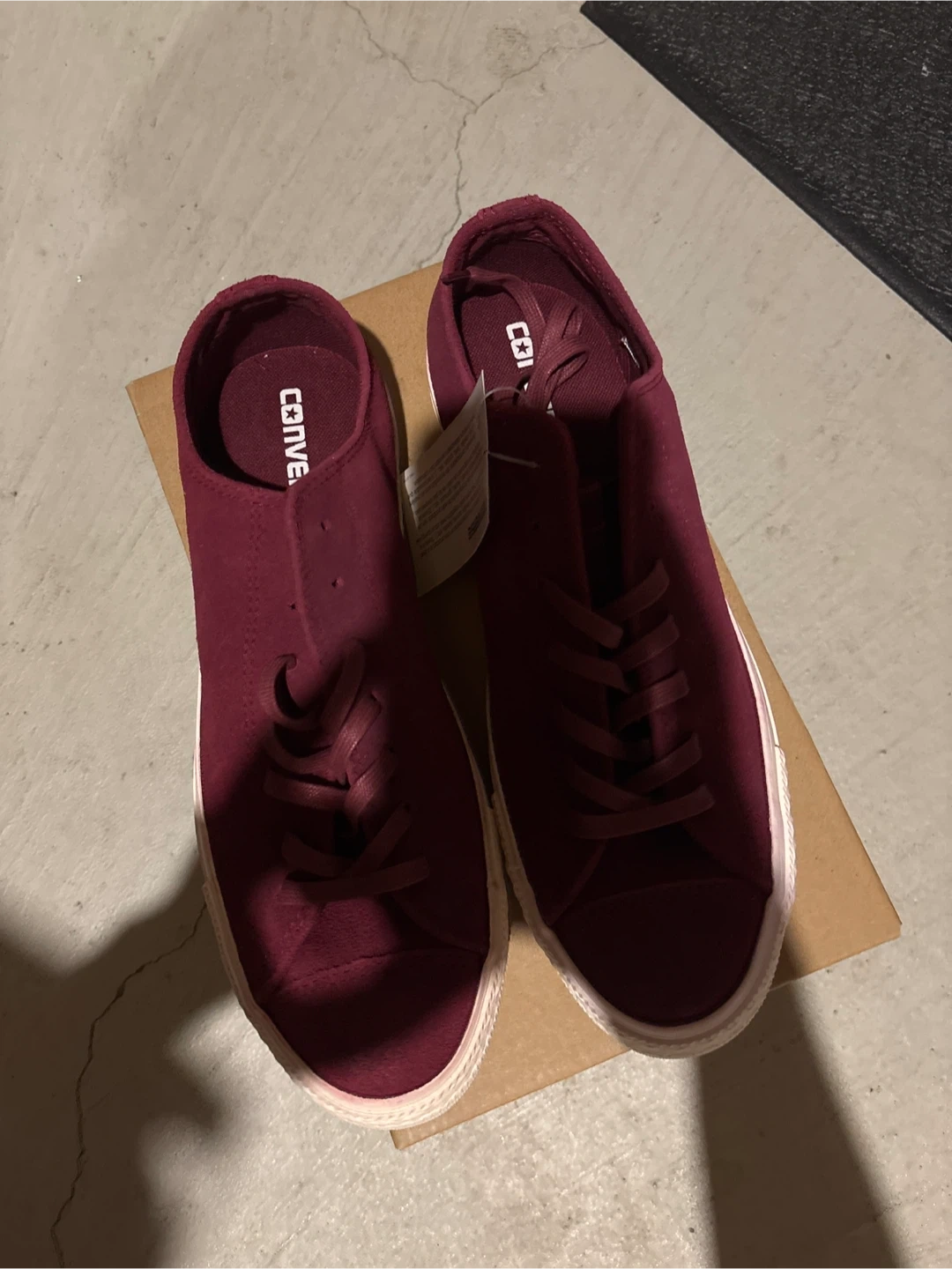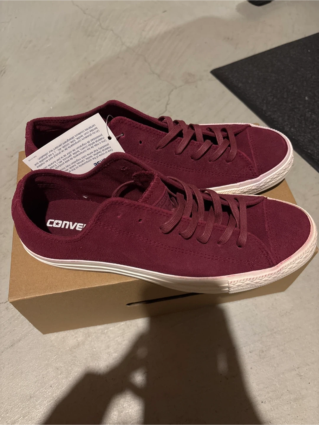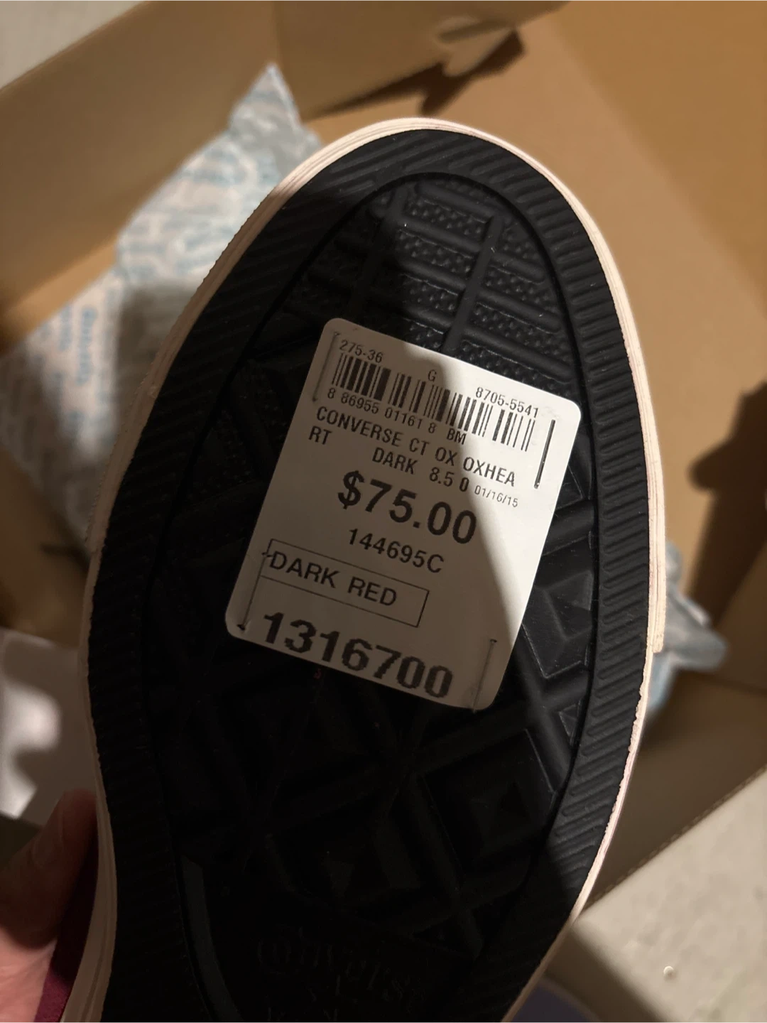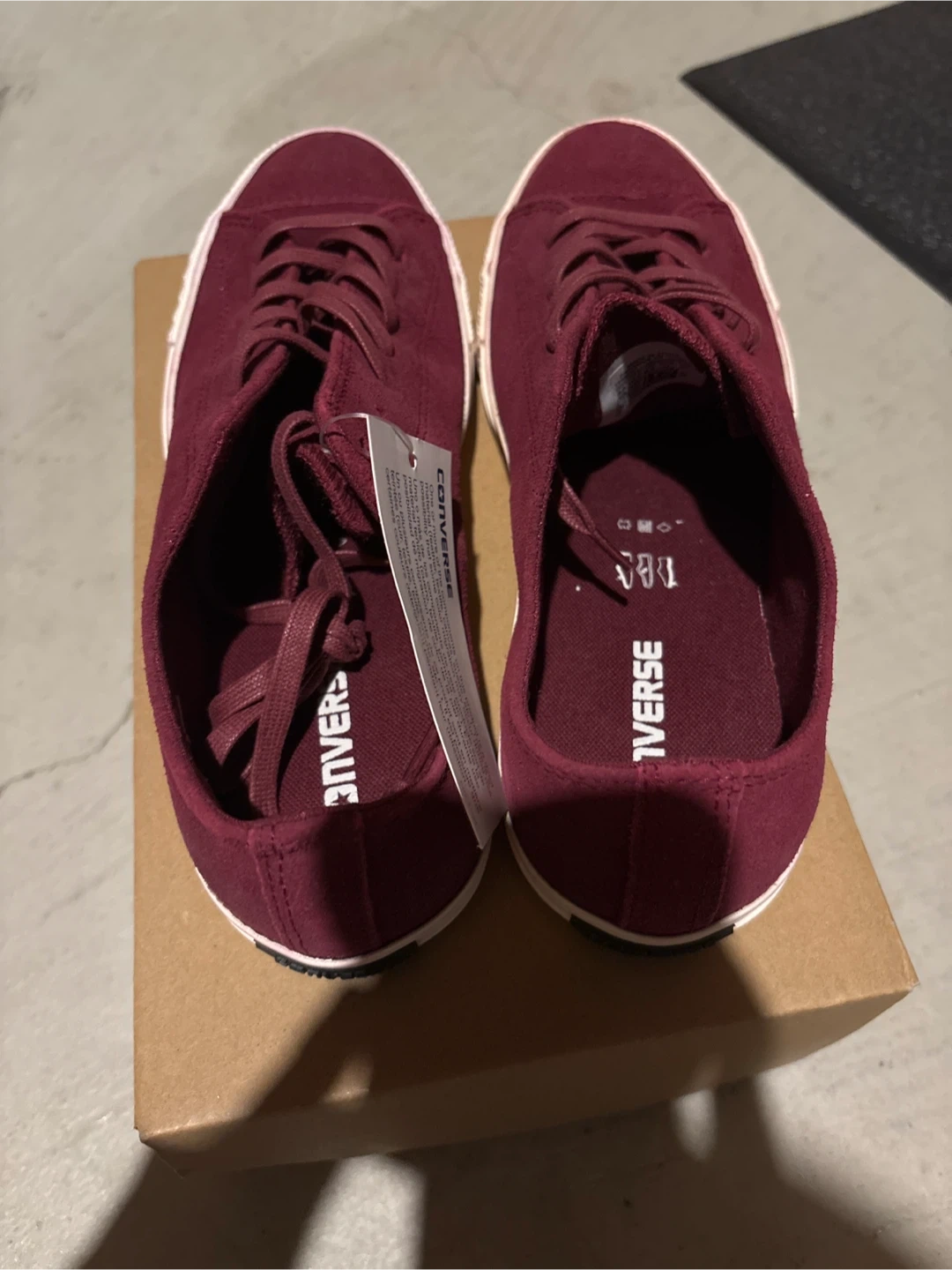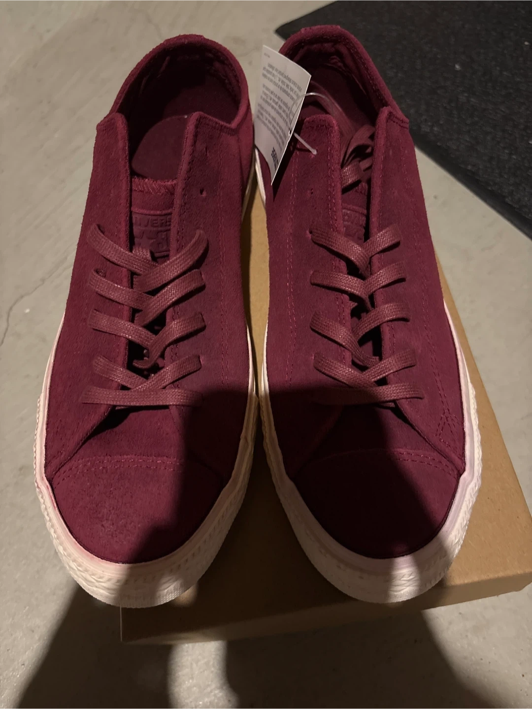 These Converse CT OX OXHEA sneakers are brand new and ready for a new home! They are a stylish dark red colour and come in size 8.5. The original price tag of $75 is still attached, and the box is included!