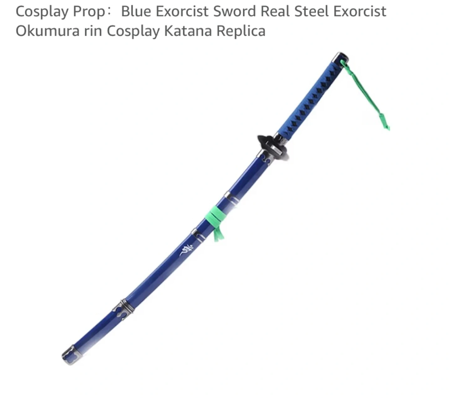291New Cosplay Prop:Blue Exorcist Sword Real Steel Exorcist Okumura rin Cosplay Katana Replica 2 available $50 each Pickup in Whitby Overall length: about 105cm/41.5 inches; handle length: about 27cm/10.8 inches; total weight: about 1.2kg/2.6 lbs Exquisite workmanship and high degree of reduction: The blade is exquisite and made of stainless steel. The sword is stainless steel. both the handle and the scabbard are very comfortable to hold and full of texture. The overall product is strong, not heat treated, the blade is not sharp, the blade is durable and the balance is excellent