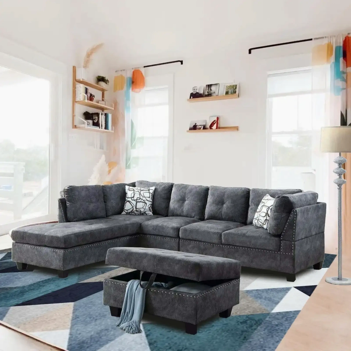 20We sell futons, sleeper couches, SECTIONAL SLEEPER, Pullout Bed, Sleeper couches, pullout beds, sofabed, dining tables, kitchen tables, dinette sets, bedroom sets, single beds, sectional beds, bunkbed, recliner sets, leather sofas, table lamp, sleeper sofa, twin bed mattresses, roll mattresses, memory foam mattresses, queen bed frame, metal bed frames, accent chairs, coffee tables, end tables, night tables, console table, sofa tables dining chairs, wooden tables, king bed frame kids bed children’s furniture, floor lamp, wall art, paintings, rugs, etc…… Luxurious 4-Piece Sectional Sofa Set With LHF Chaise & Storage Ottoman - Grey • Accent Pillows Included • Contemporary Design • Nail-head Trim Detailing Dimensions (W x H x D): Sectional Sofa: 98" x 33" x 71" Ottoman: 29" x 17.5" x 19" Sale Price: $1199 Cod Available Order From Our WEBSITE and Get It Delivered to Your Home www.cosmichomescanada.com *****WhatsApp: 226-883-3111***** $$DELIVERY AVAILABLE AT ADDITIONAL COST $$ *********CASH ON DELIVERY IS ALSO AVAILABLE PLEASE CONTACT**********