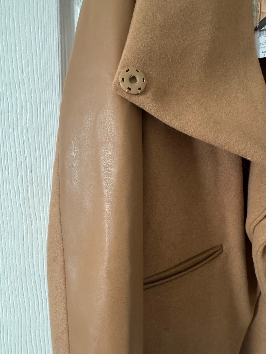 109Selling a lovely Charlie Paige coat in a beautiful brown colour! It's a size small/medium and features stylish leather sleeves. Perfect for adding a touch of elegance to any outfit. It’s brand new with tag.
