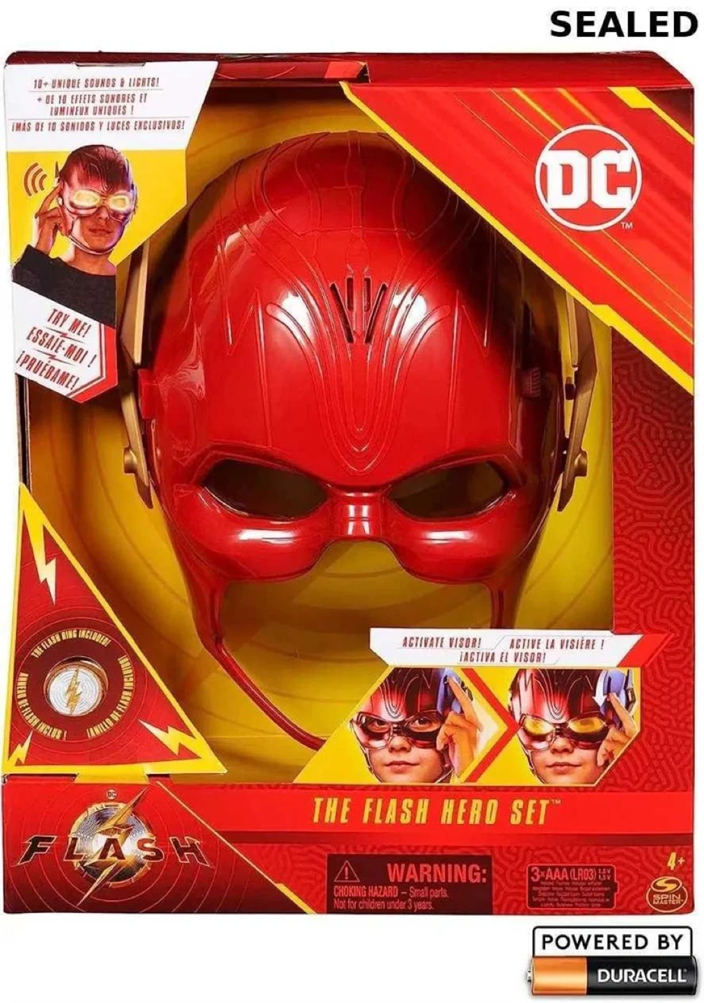 75Selling a brand new, sealed DC The Flash Hero Set! This cool set includes a mask with unique sounds and lights. The Flash ring is also included! It requires 3 AAA batteries.
