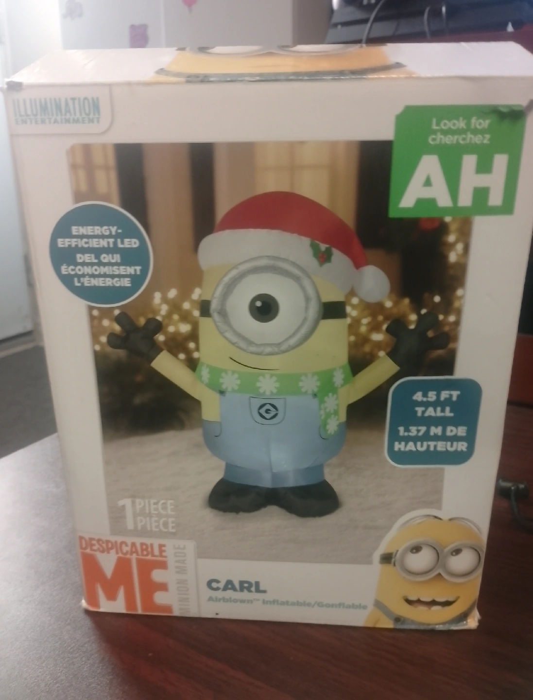 Selling a new Despicable Me CARL Airblown Inflatable! It stands 4.5 ft tall. It's energy-efficient LED, suitable for indoor and outdoor use. Just perfect to add to your Christmas decor. $20 or best offer.