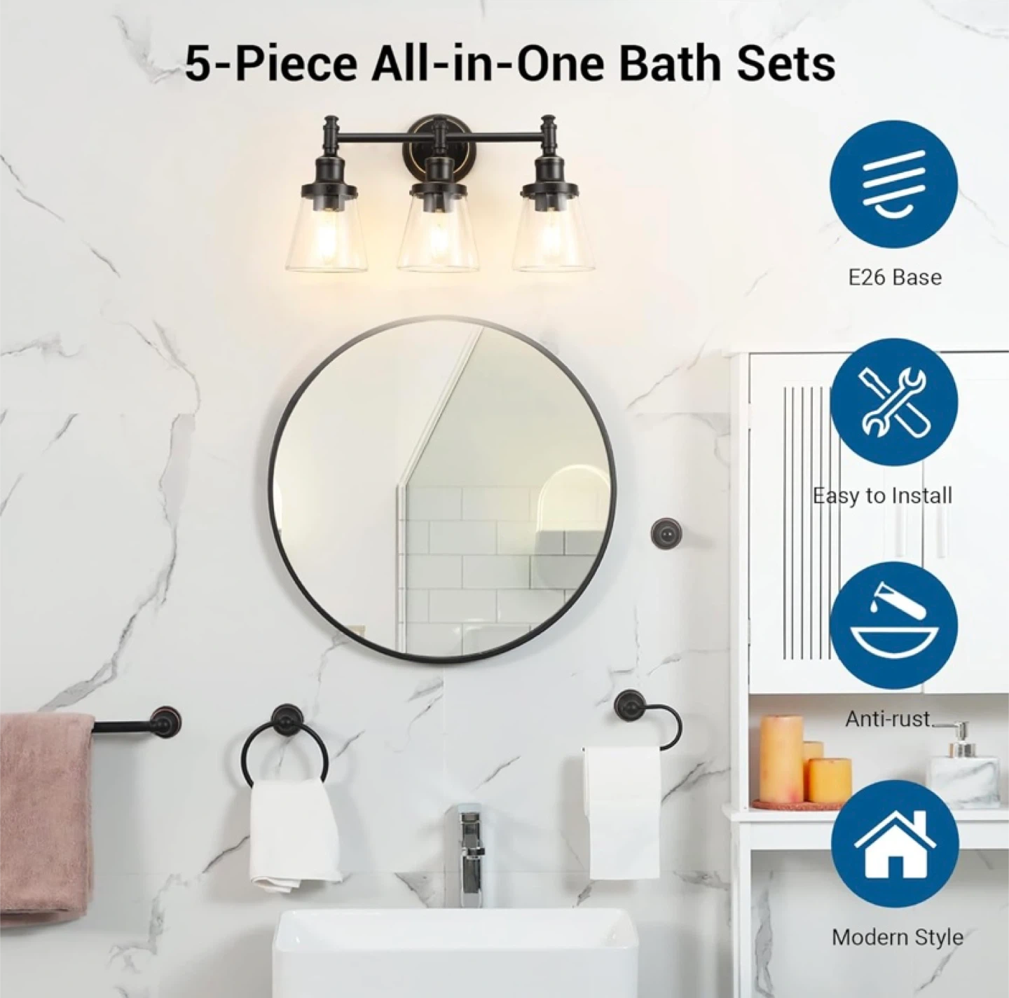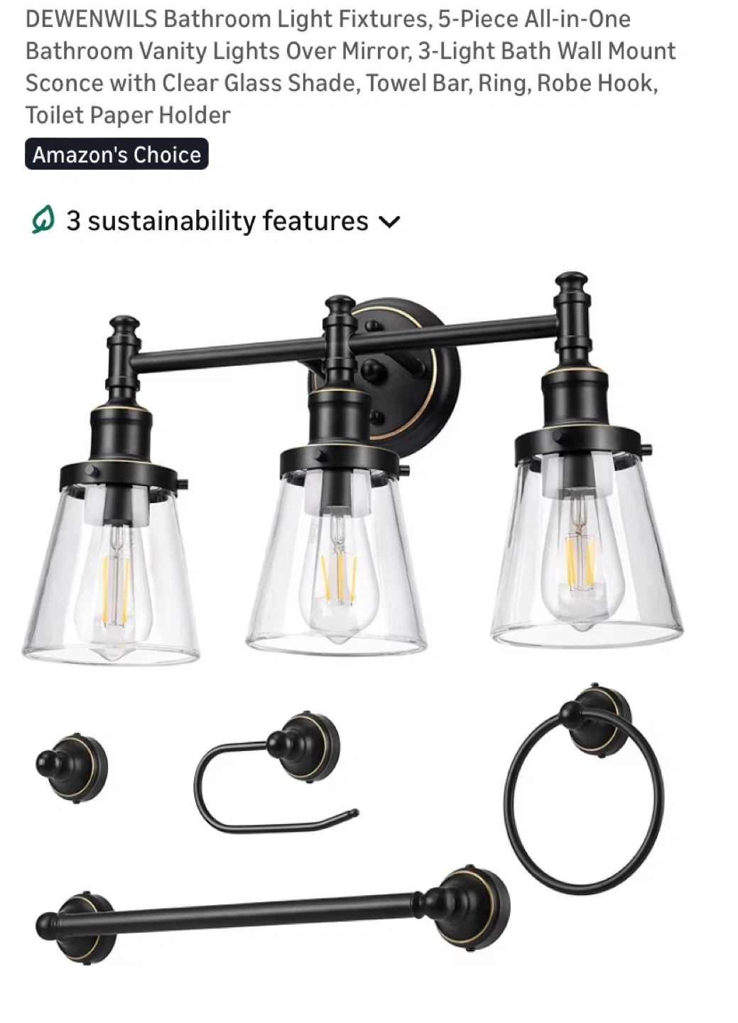 New DEWENWILS 5 Piece Bathroom Light Fixture and Accessories