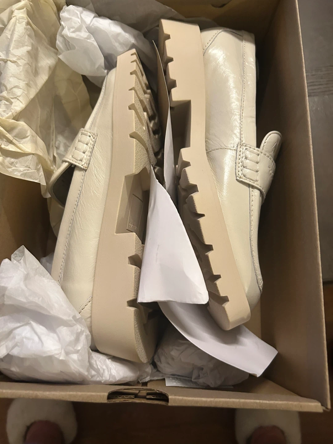 73Colour Off White Crinkle Patent Heel Type Flat Toe Style Square Toe Style Name Elias Pattern Style Solid character Barbie Features & Specs Closure Type Pull-On Shoe Type Loafer Water Resistance Level Not Water Resistant Measurements Shoe Height Map Low Top Materials & Care outer-material Leather Sole Material Rubber Insole Material Water-based Leather Alternative