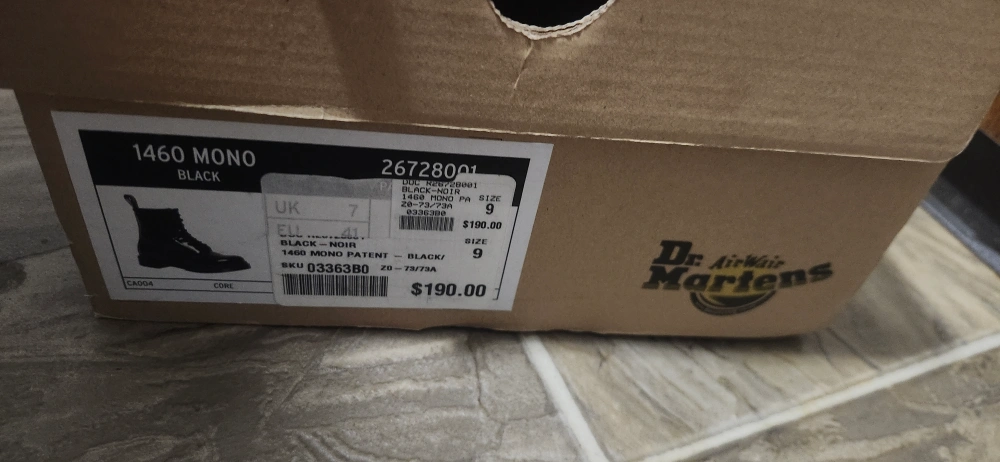 Selling a pair of new Dr. Martens 1460 Mono boots in black patent. These are a US size 9. They come with the original box. Retails for $190.00
