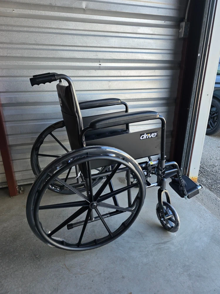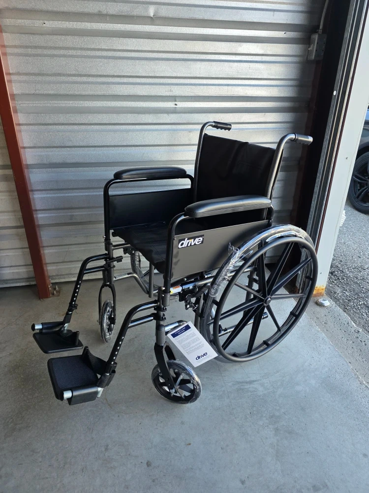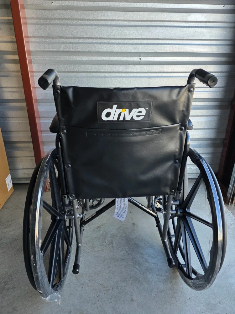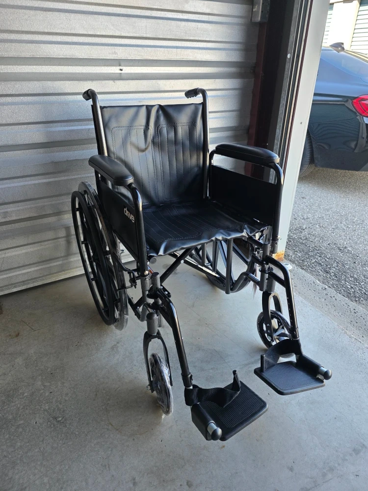Brand new Drive Wheelchair. We issue receipts! Delivery available. Powder-coated silver vein steel frame Embossed vinyl upholstery is durable, lightweight, attractive and easy-to-clean Polyurethane tires mounted on composite wheels provide durability and low maintenance Dual axle provides easy transition of seat height from 19.5" to 17.5" 8" front casters are adjustable in three positions Padded armrests for comfort Carry pocket on backrest provides additional convenience Comes with swing-away footrests or elevating leg rests with tool-free adjustable length riggings Footrests include plastic foot plates with heel loops Push-to-lock wheel locks Call Danny to reserve your wheelchair today! 647-575-2972