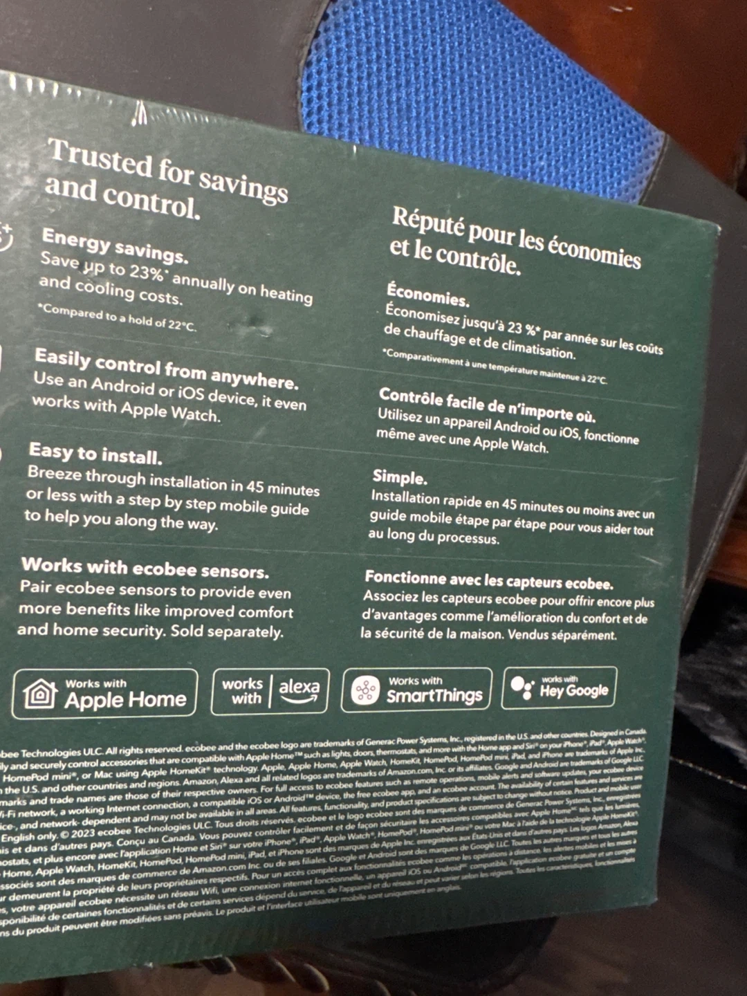 Selling a brand new Ecobee3 Lite smart thermostat, still in its original packaging! It's designed for energy savings, helping you save up to 23% annually on heating and cooling costs. It easily connects to your Apple or Android device and works with Apple Home, Alexa, and SmartThings. Plus, it pairs well with Ecobee sensors for enhanced comfort and security