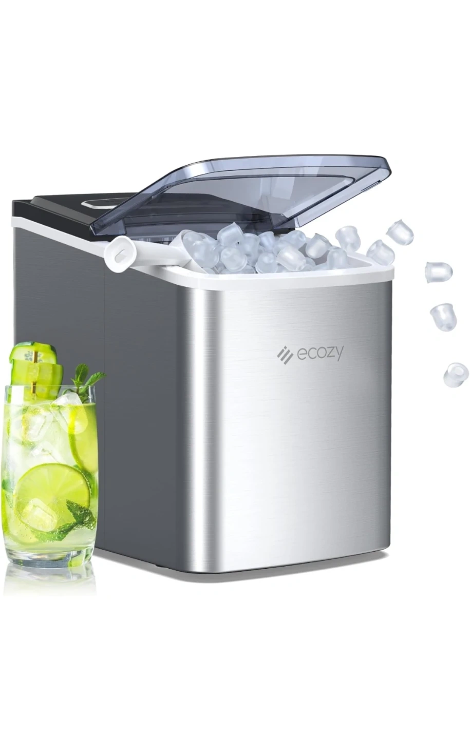 143New ecozy Portable Ice Maker Countertop, 9 Cubes Ready in 6 Mins, 26.5 lbs in 24 Hours, Self-Cleaning Ice Maker Machine with Ice Bags/Ice Scoop/Ice Basket for Home Kitchen Bar Party pick up Edmonton cash no transfers.