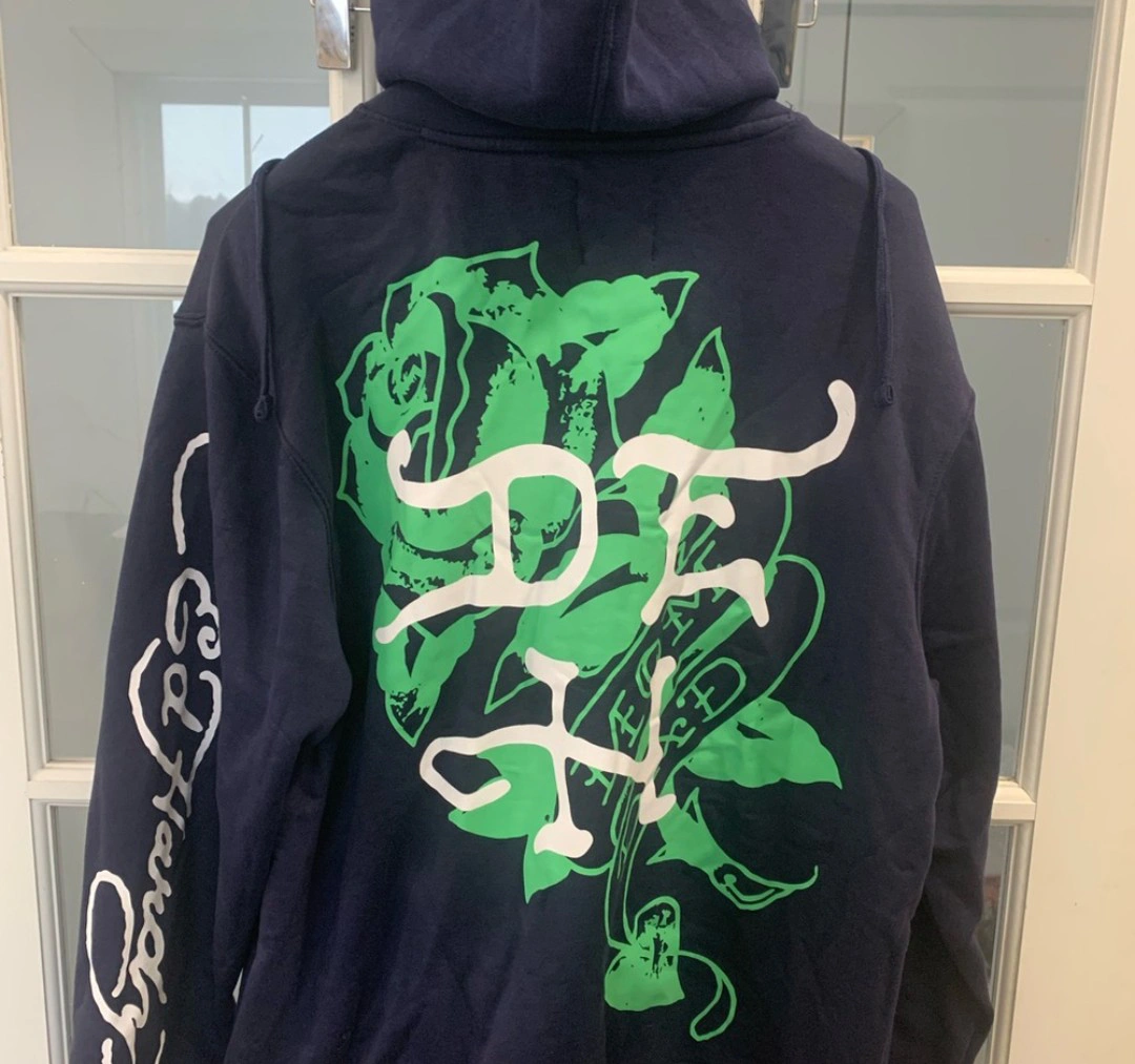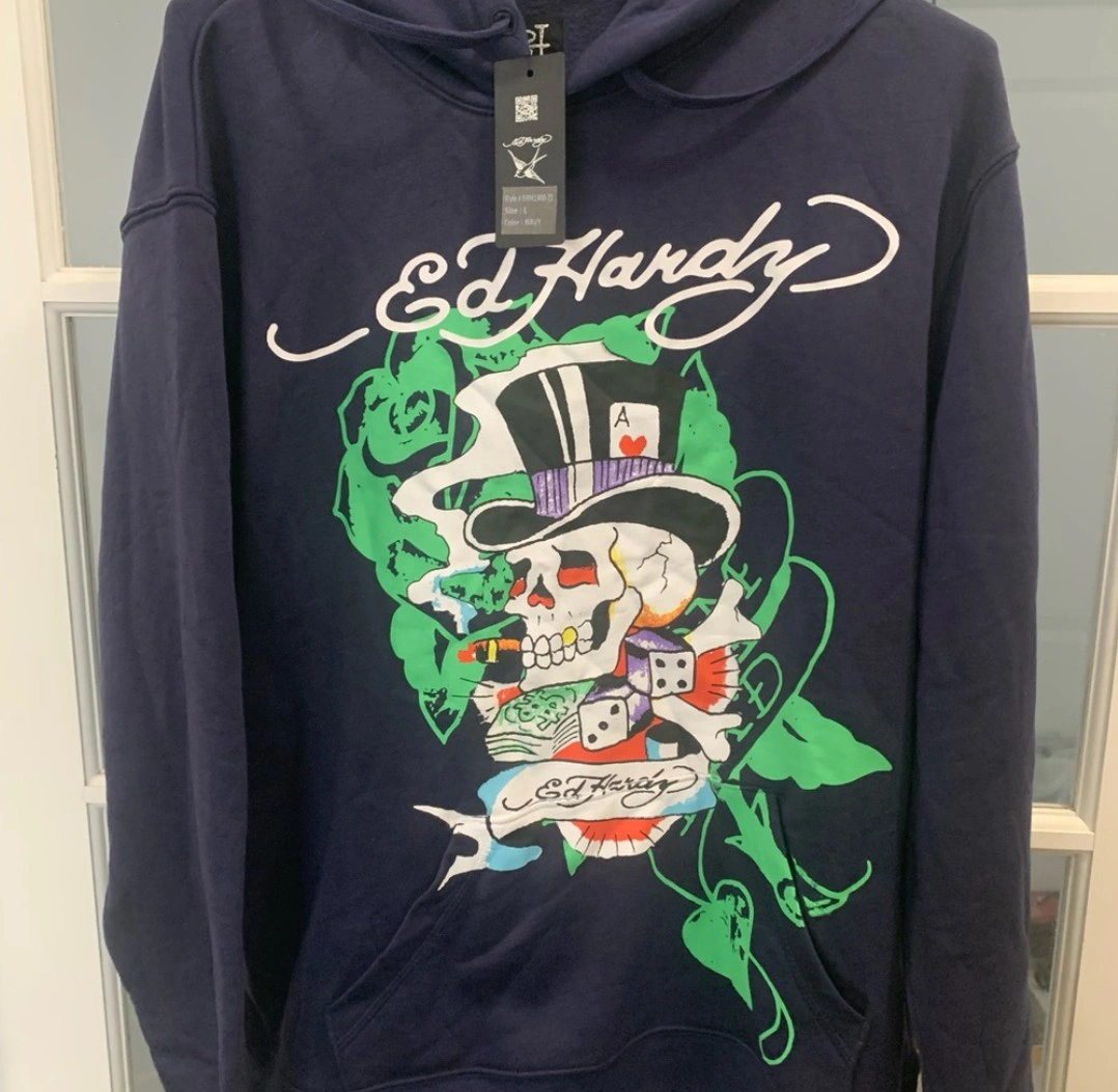 77New Ed Hardy sweater Features a smoking skull with dice A green flower on the front and back Ed Hardy on the sleeve Don Ed Hardy