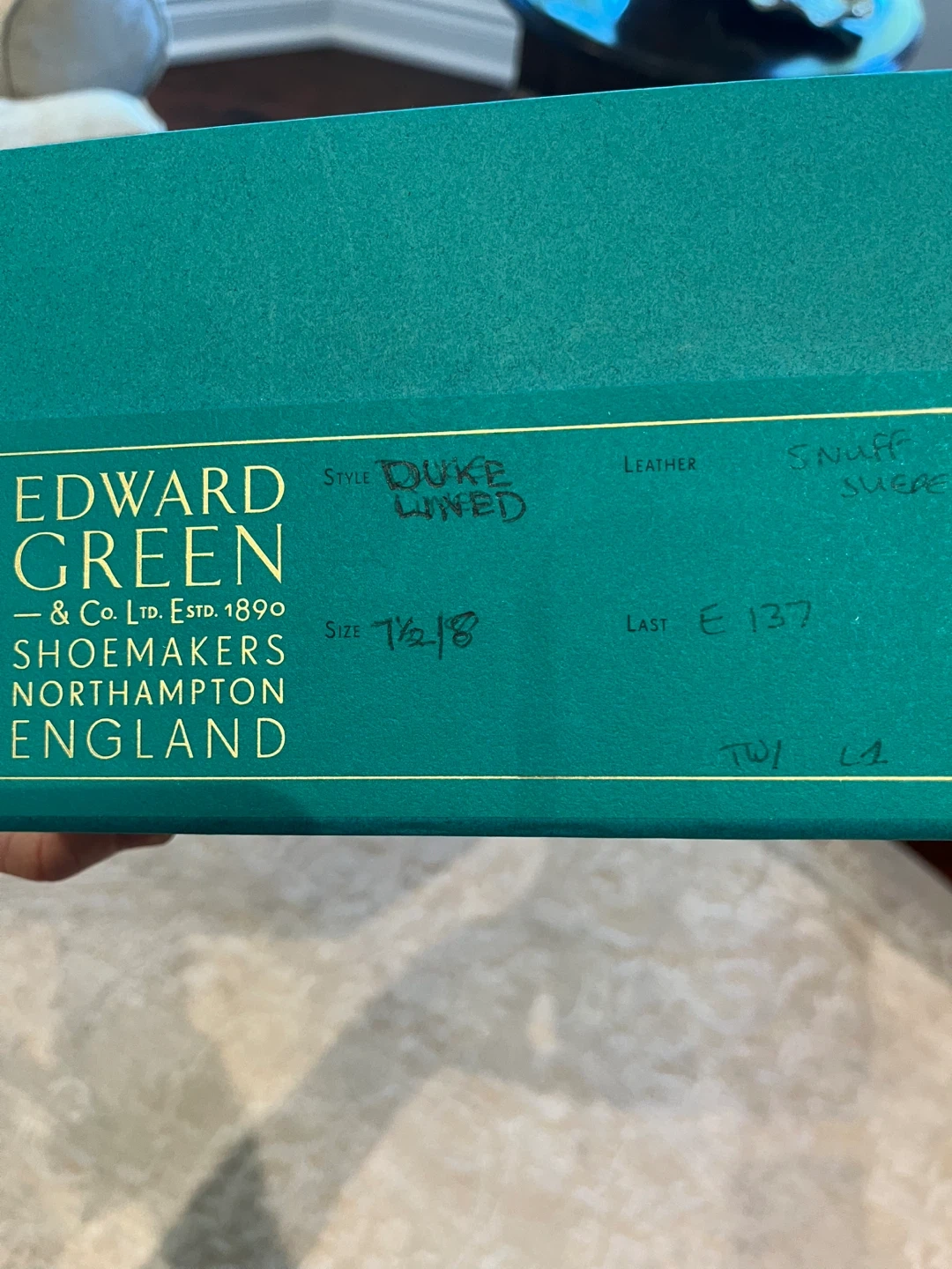 New Edward Green & Co men’s shoes Duke Lined Suff Suede Size is 7 1/2 - 8 Never worn excellent condition