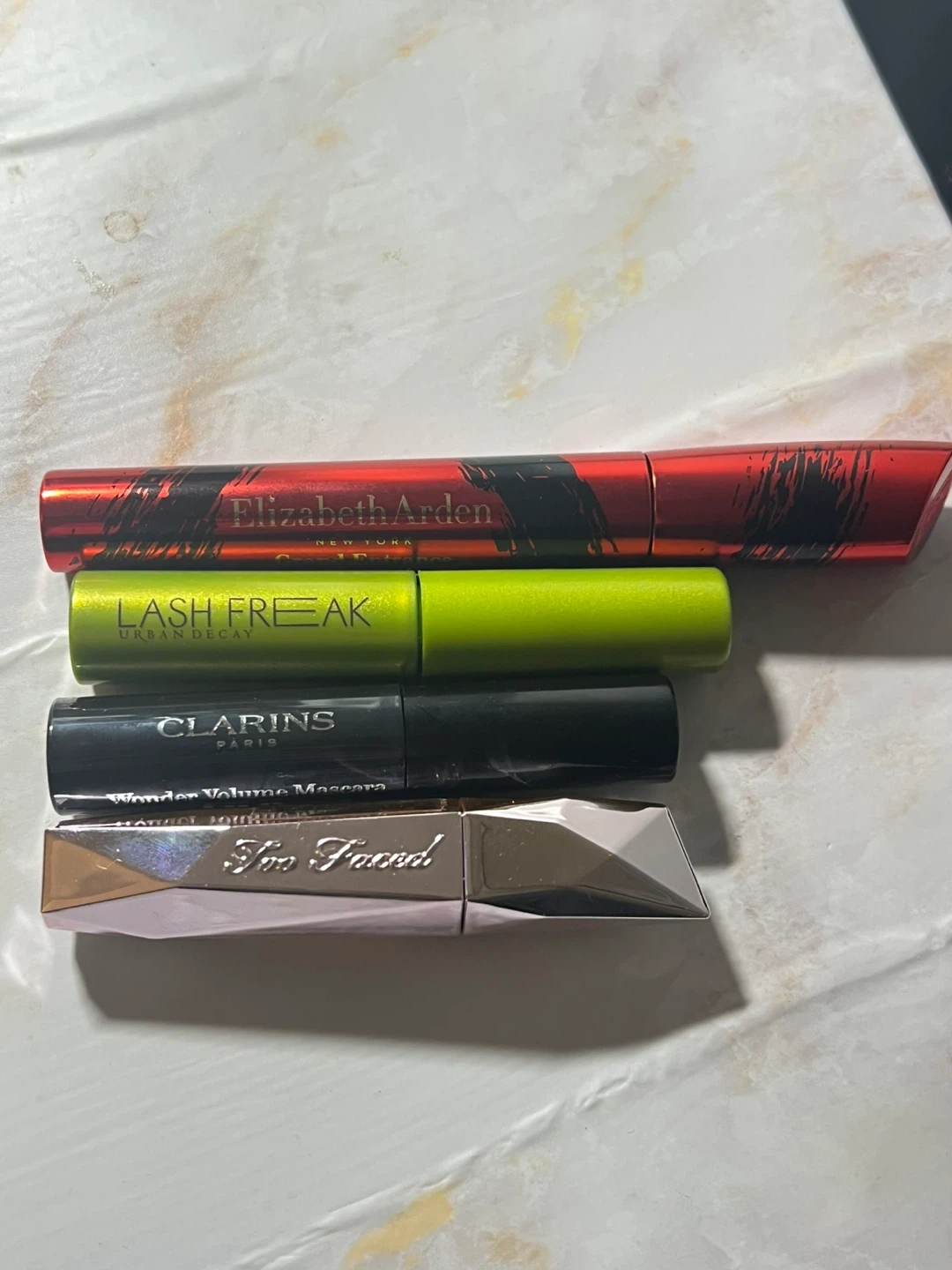 96New and never open $5 each Selling a collection of mascaras including Elizabeth Arden, Urban Decay Lash Freak, Clarins Wonder Volume Mascara, and Too Faced mascara Elizabeth Arden Grand Entrance 01 Stunning Black Urban Decay Lash Freak 2ml Clarins Wonder Volume XXL 01 Extreme Black 3ml Too Faced Damn Girl 24 hour Mascara 6ml Cash only Pickup only