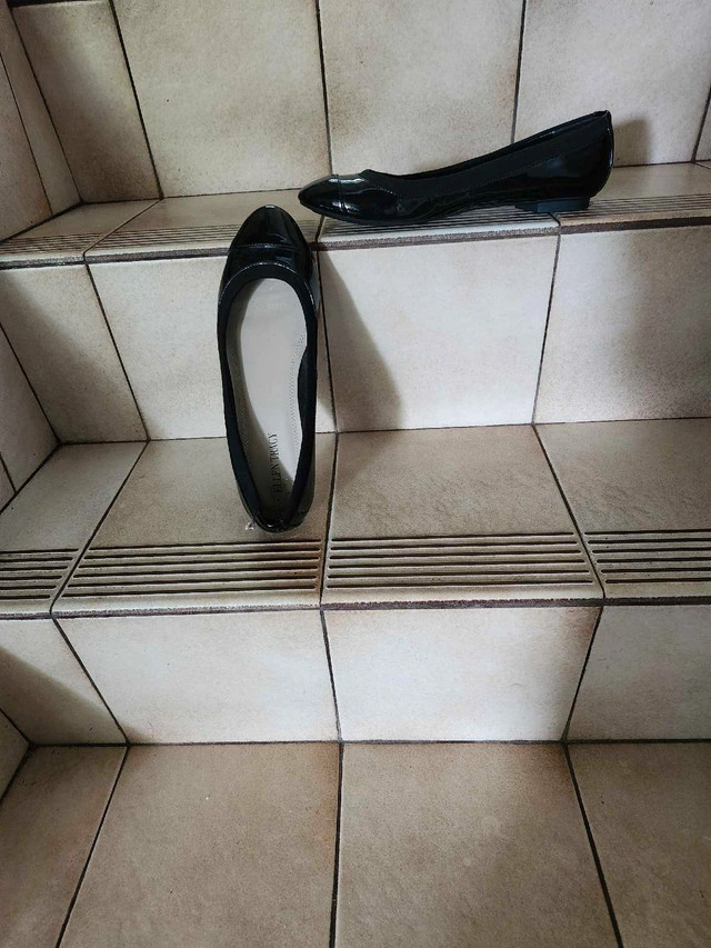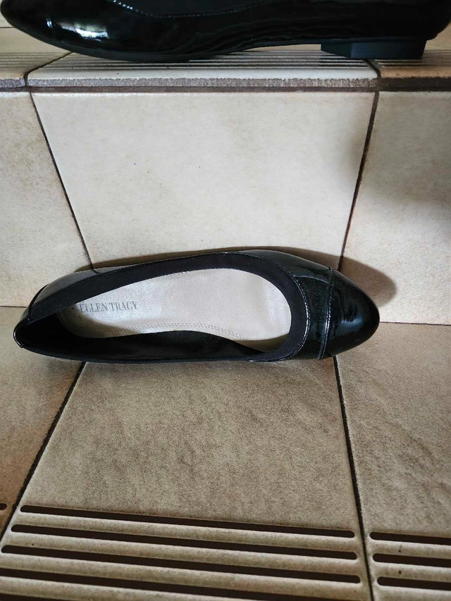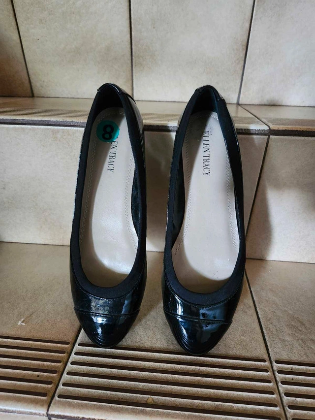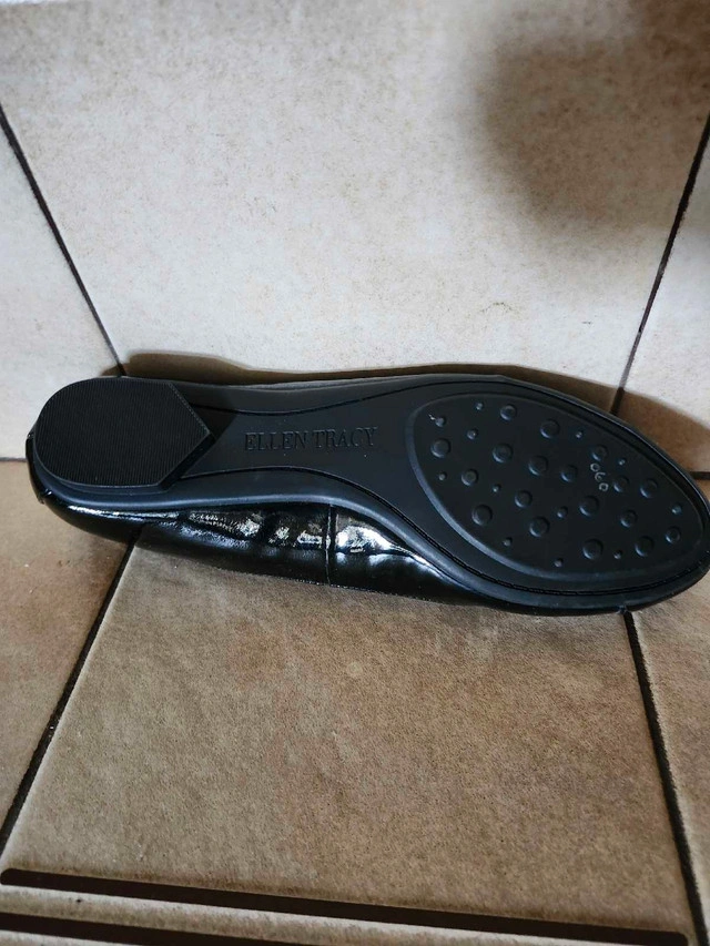 18Never worn Ellen Tracy black patent leather shoe. Low heel, rubber sole. Size 8. Retail price $80.