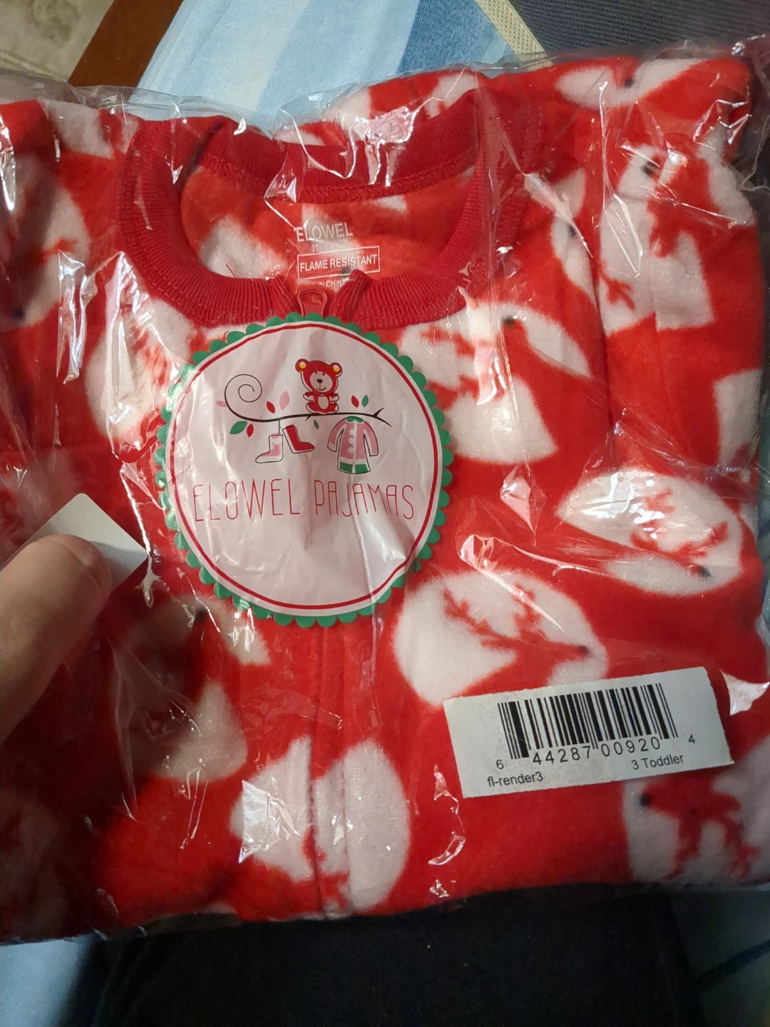 63These are brand new Elowel pajamas in a size 3 toddler! It's a footed with zipper! They feature a cute red and white pattern. Perfect for keeping your little one cozy!