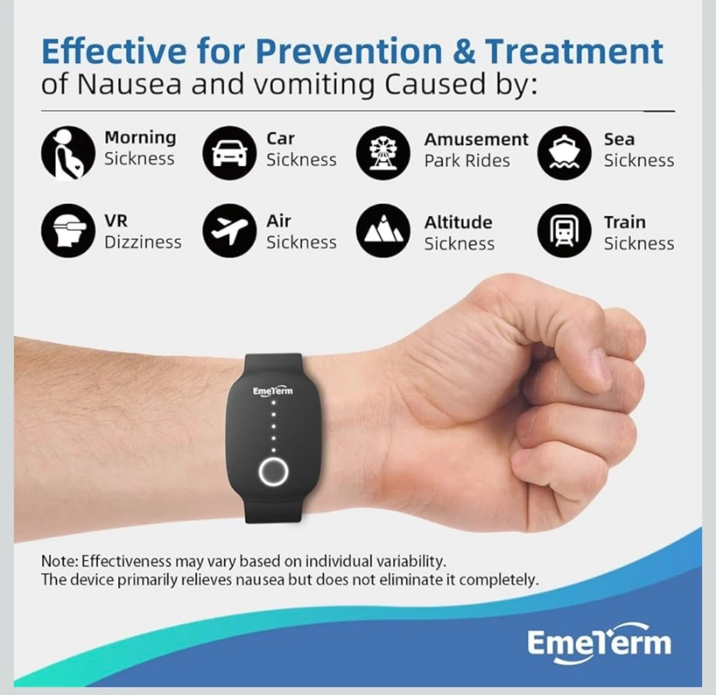 New, Sealed EmeTerm Motion Sickness Wristband Nausea Relief Expires Dec 20, 2027 Black 2 available $60 each (retail $100 plus tax) Pickup in Whitby