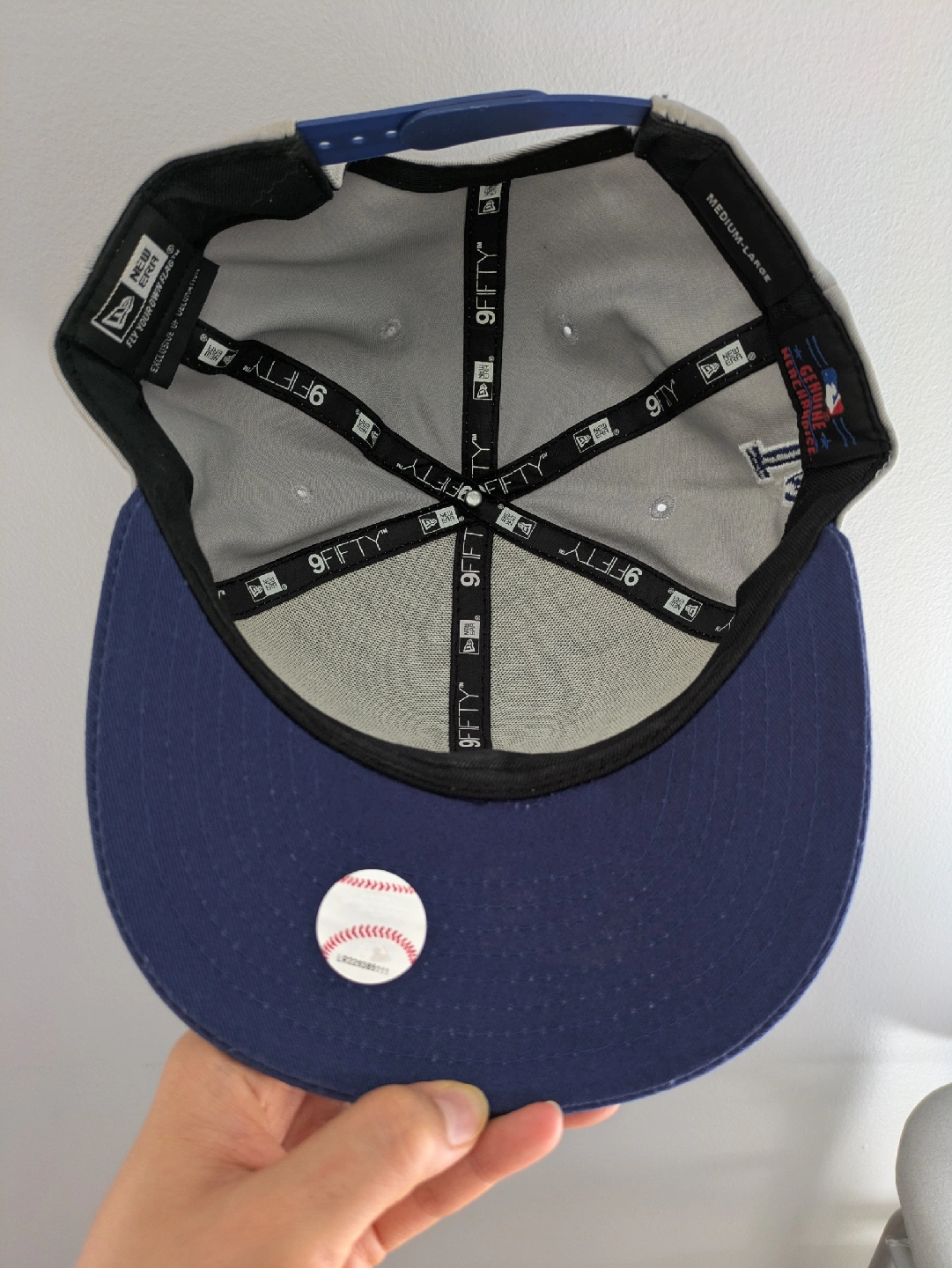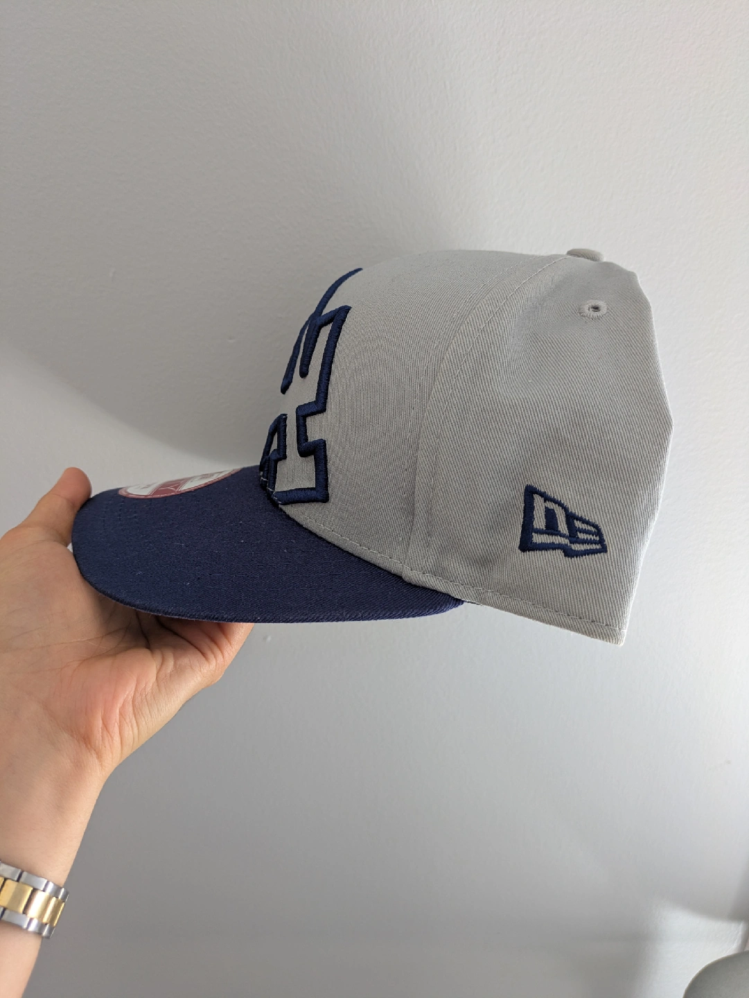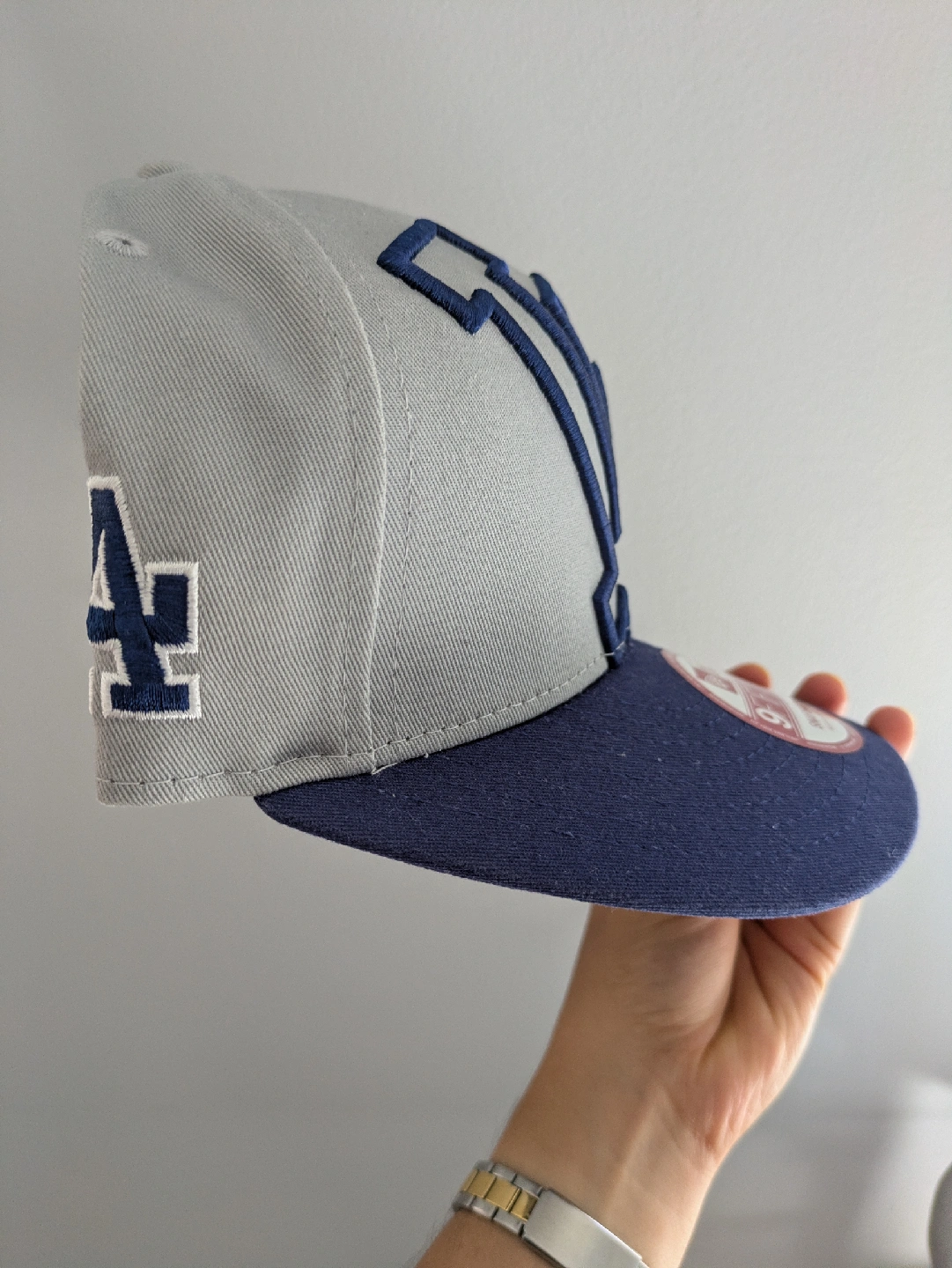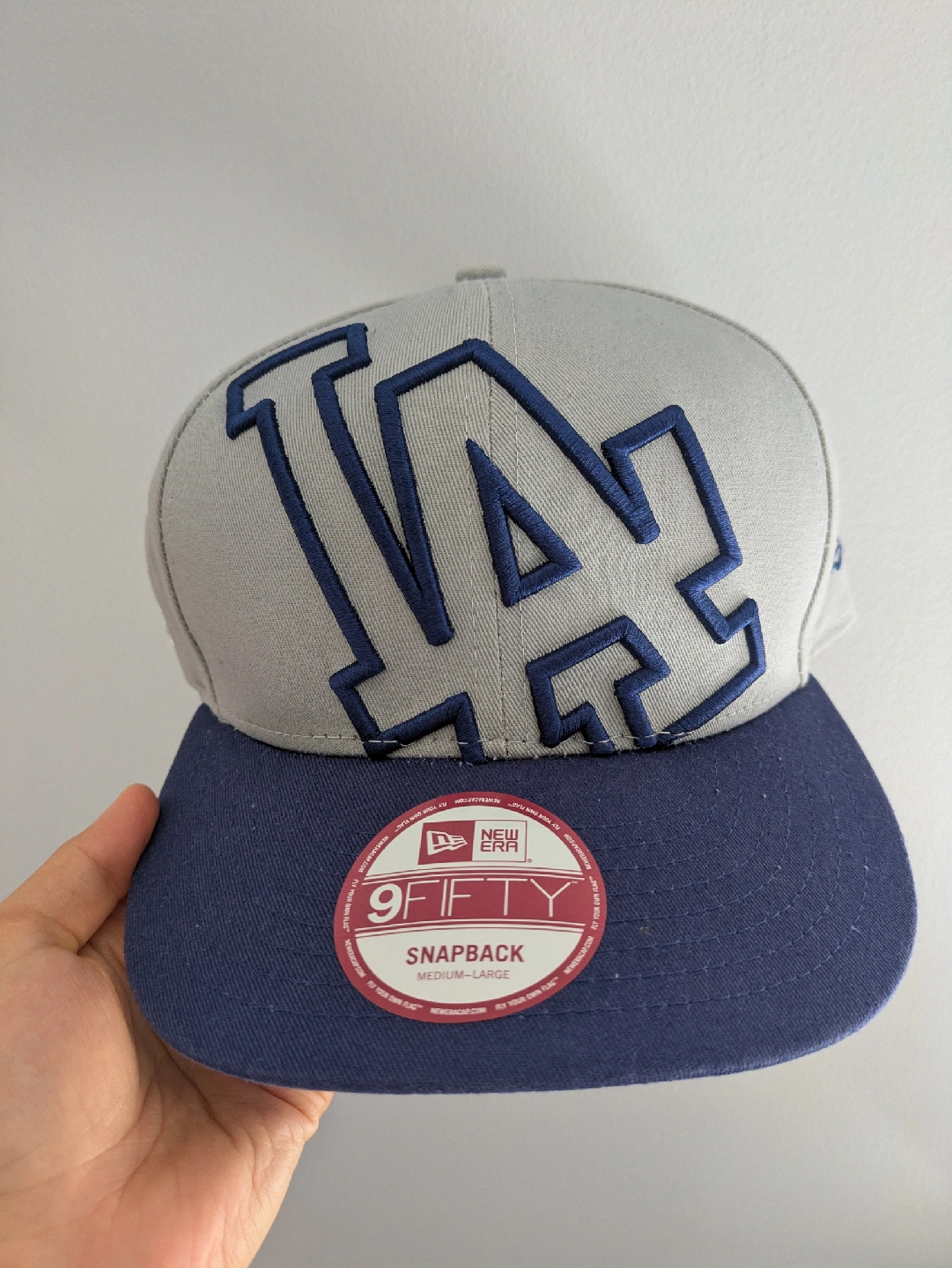 Selling a New Era LA Dodgers 9FIFTY snapback hat. It's in great condition and the size is Medium/Large. The colours are grey and navy blue. Used like new