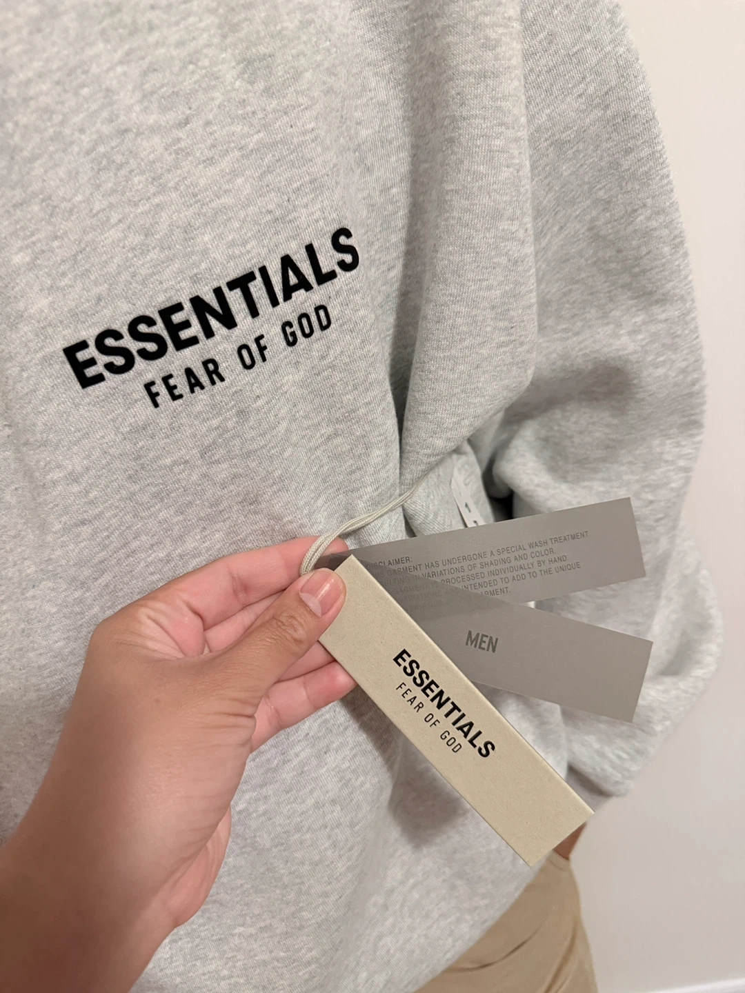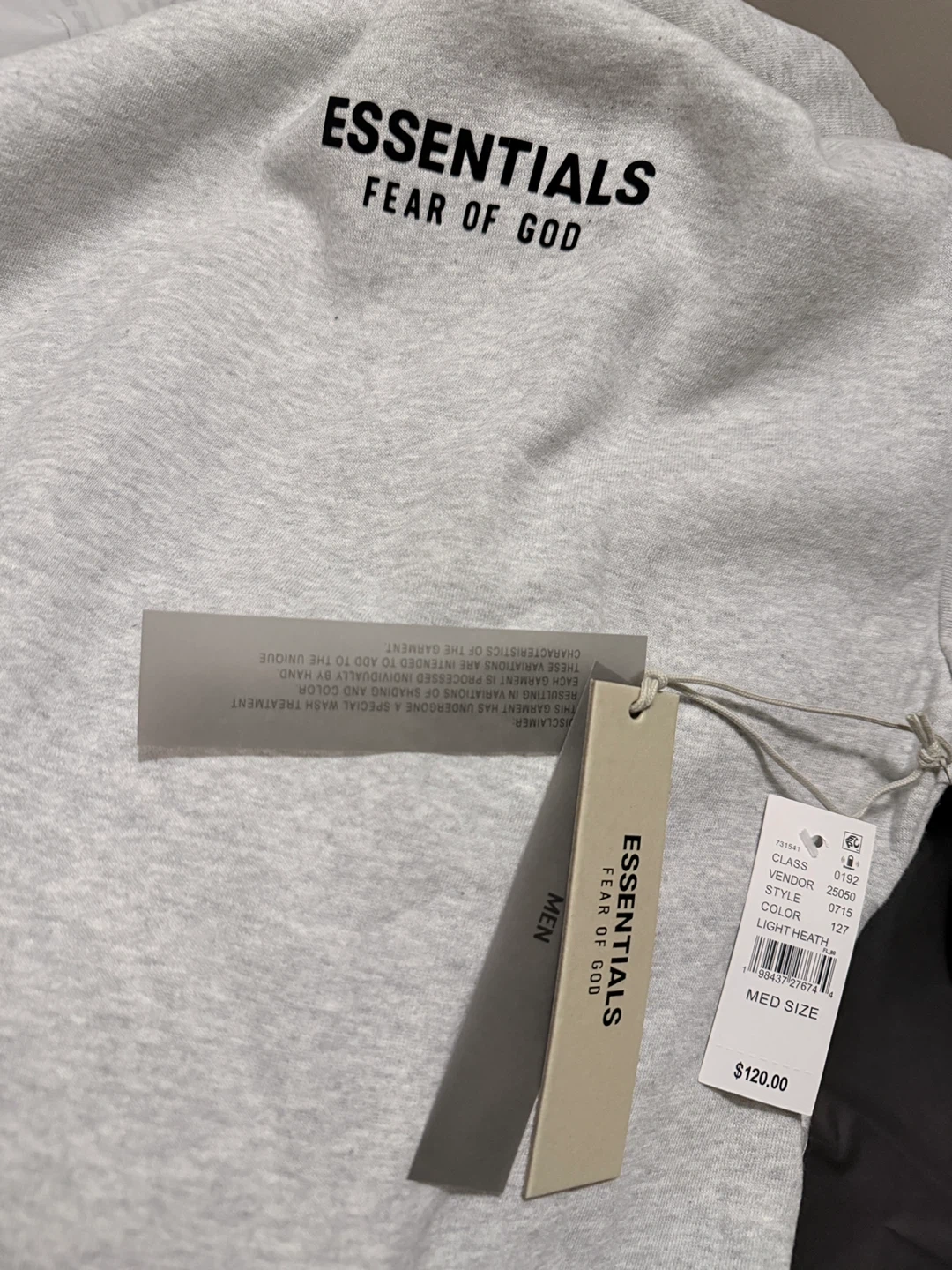 15This orginal Selling a brand new Essentials Fear of God hoodie in light heather. This is a men's size medium. The original price was $120. It's a super comfortable hoodie!