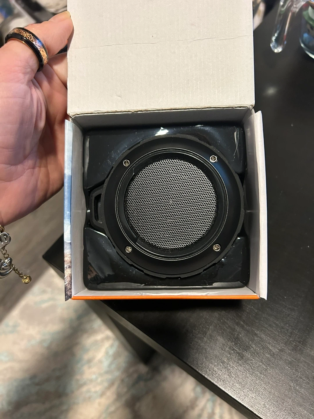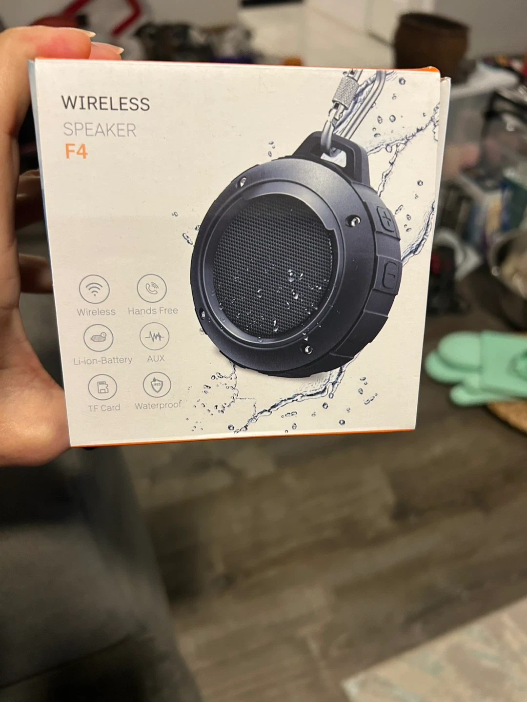 10Selling a brand new F4 wireless speaker in black! This outdoor waterproof speaker is perfect for camping.