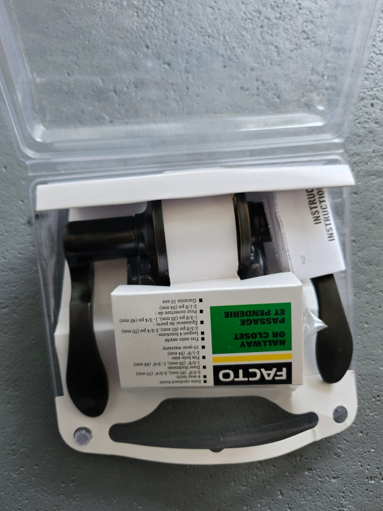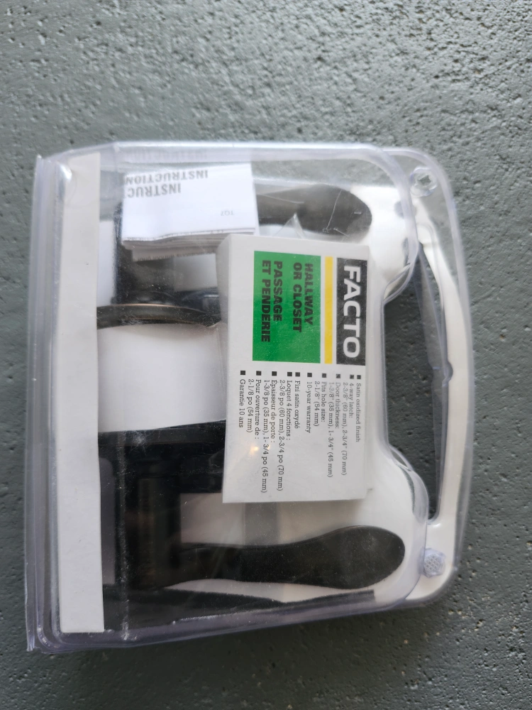 Selling a brand new Facto passage door knob for hallways or closets. It's still in its original packaging. The door thickness fits 1-3/8" (35 mm) - 1-3/4" (45 mm).