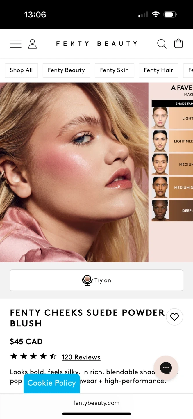 764New, unused Fenty Beauty Cheeks Suede Powder Blush in Tutu Turnt - shimmering dusty rose. Full size 4g Pickup in Richmond, cash only.