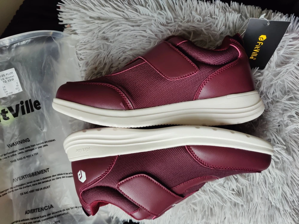 26These FitVille EasyTop StrapEase sneakers are brand new and ready for a new home! They are a women's size 10.5EW and come in a lovely plum colour. Perfect for everyday wear and super comfy!