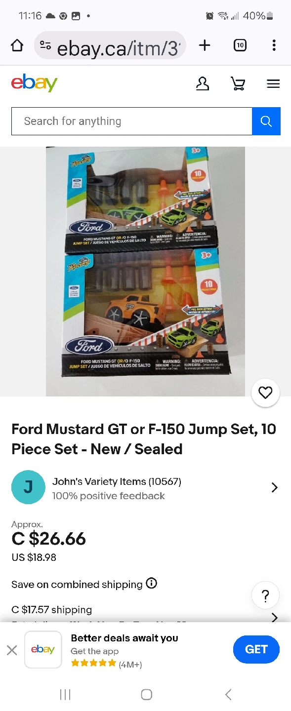 Selling a brand new, sealed Ford Mustang GT or F-150 Jump Set! It's a 10-piece set, perfect for kids aged 3 and up who love cars and racing. This set includes everything needed to create exciting jump scenarios.