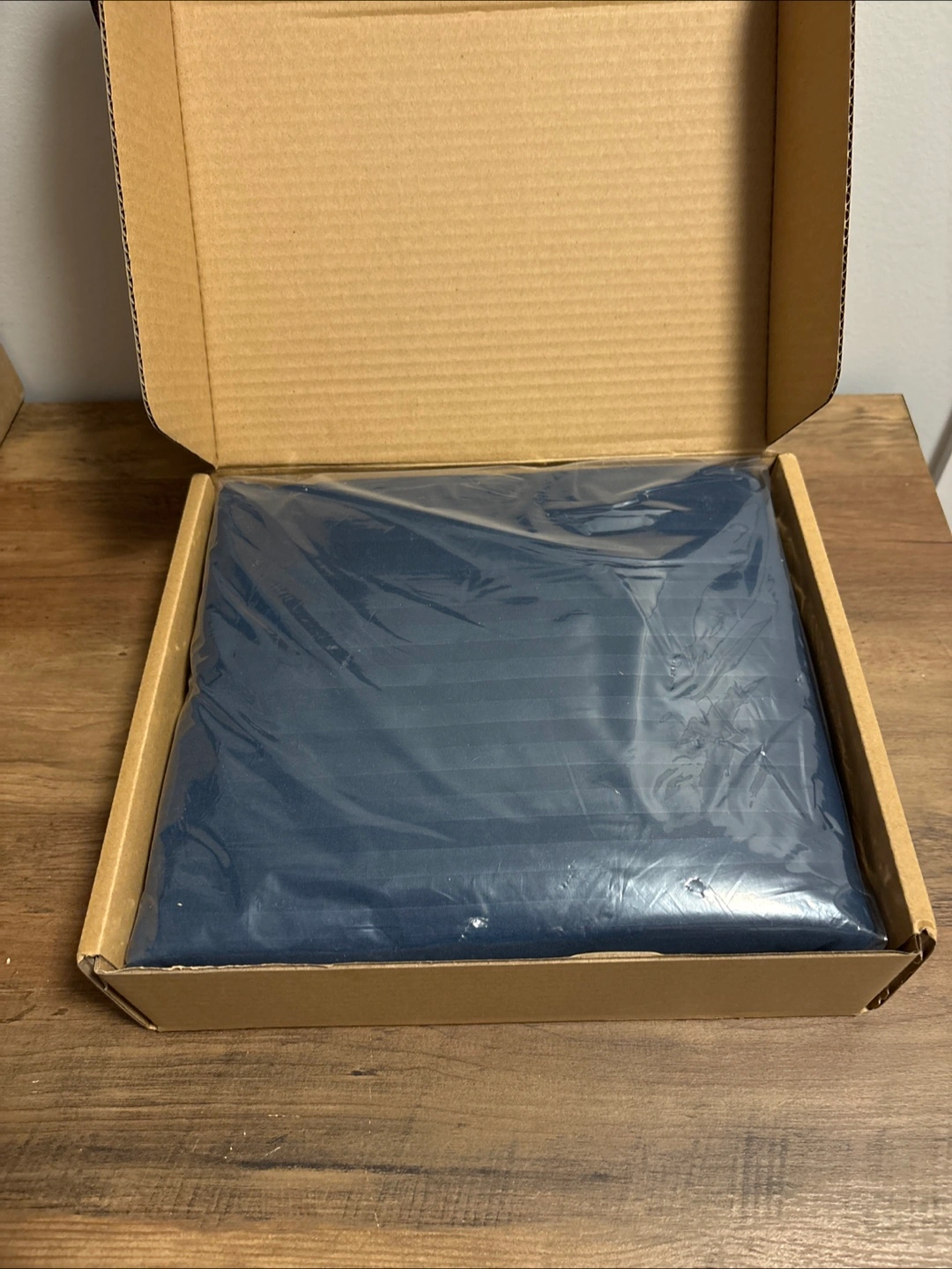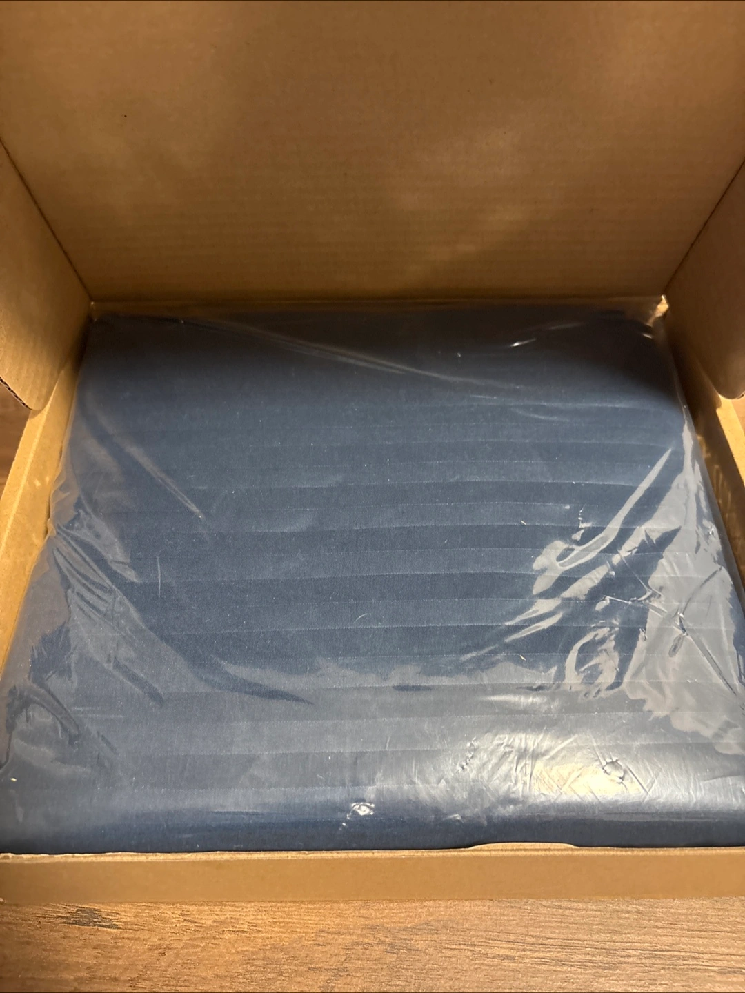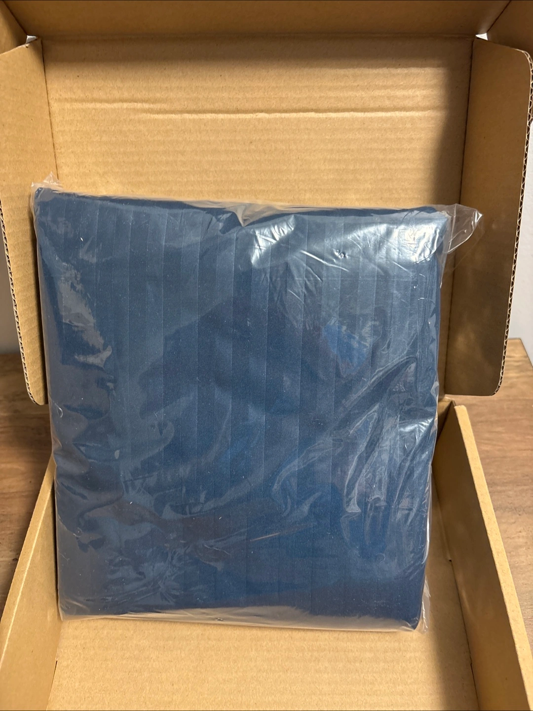 This is an AmazonBasics Deluxe Microfiber Duvet Cover Set in Navy Blue, size Full/Queen. The set includes: - 1 Duvet Cover (88 in x 88 in / 224 cm x 224 cm) - 2 Pillow Shams (20 in x 26 in / 51 cm x 66 cm) It's made of 100% Polyester and comes in its original box