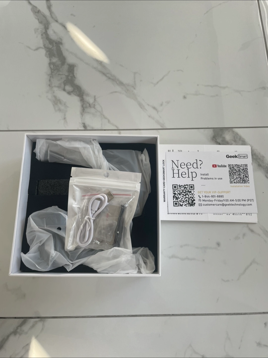 Selling a brand new Geek Smart L-B201 smart lock. It features fingerprint unlock, one-touch unlock, and auto lock. All components are included in the box!