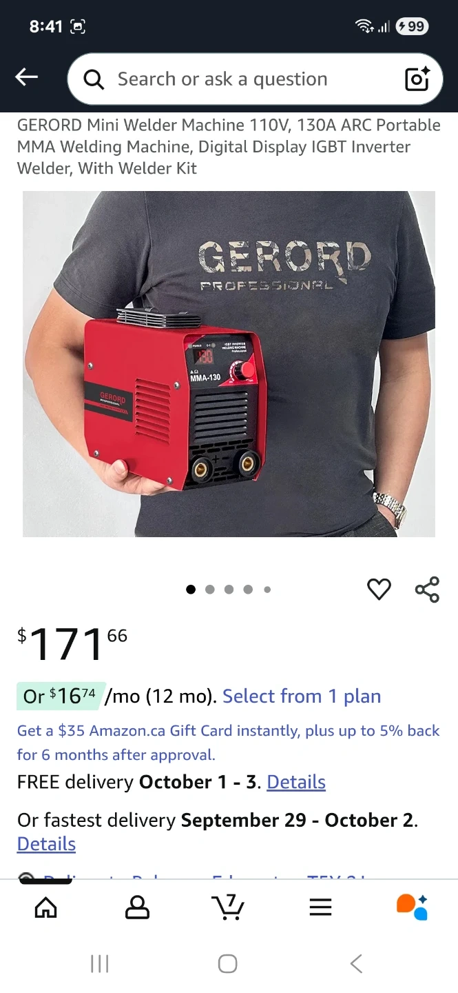 143New never used GERORD Mini Welder Machine 110V, 130A ARC Portable MMA Welding Machine, Digital Display IGBT Inverter Welder, With Welder Kit,GERORD Mini Welder Machine 110V, 130A ARC Portable MMA Welding Machine, Digital Display IGBT Inverter Welder, With Welder Kit،【 Mini and Portable】Welding machine with unique appearance design, small and Exquisite, Initiated in the industry. light weight. Portable handle, easy to carry and save storage space.Best Gifts for Father's Day at Christmas 【Best Choice for Beginner】This welder ideal for E6011.E6013.E6014.E7018 and welding rods below 1/8 inch.It can weld 10 electrodes in a row without protection,with high duty cycle. 【Powerful Functions】 Portable welding machine with built-in hot start function, quick arc starting. Easy work with new welders or users. It can be welded normally at minus 20 degree, advanced technology and reliable quality.【Safety Guarantee】 Welder machine with Over-heating protection, Over-current protection and over-loading protection,use more safety ,quality more assured.【Adjustable Voltage & High-Quality Accessories】 Portable Welder 20A-130A adjustable current, 90V-140V wide-voltage design, unafraid of the voltage fluctuations. Accessories included: 10*E7018(3/32 inch) welding rod, 1* Arc welder, 1*welding brush, 1*welding ground wire, 1*folding welding cap ,High-quality accessories, durable and not easy to damage pick up Edmonton cash no transfers.