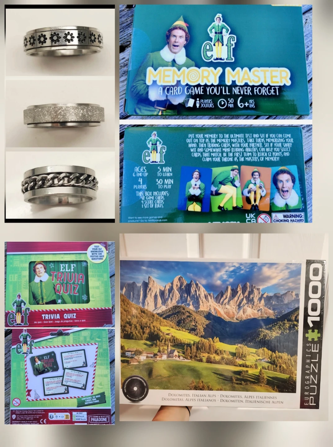 97New gifts- fidget rings, Elf games, 1000 piece puzzle. I also have other puzzles, pjs & more!