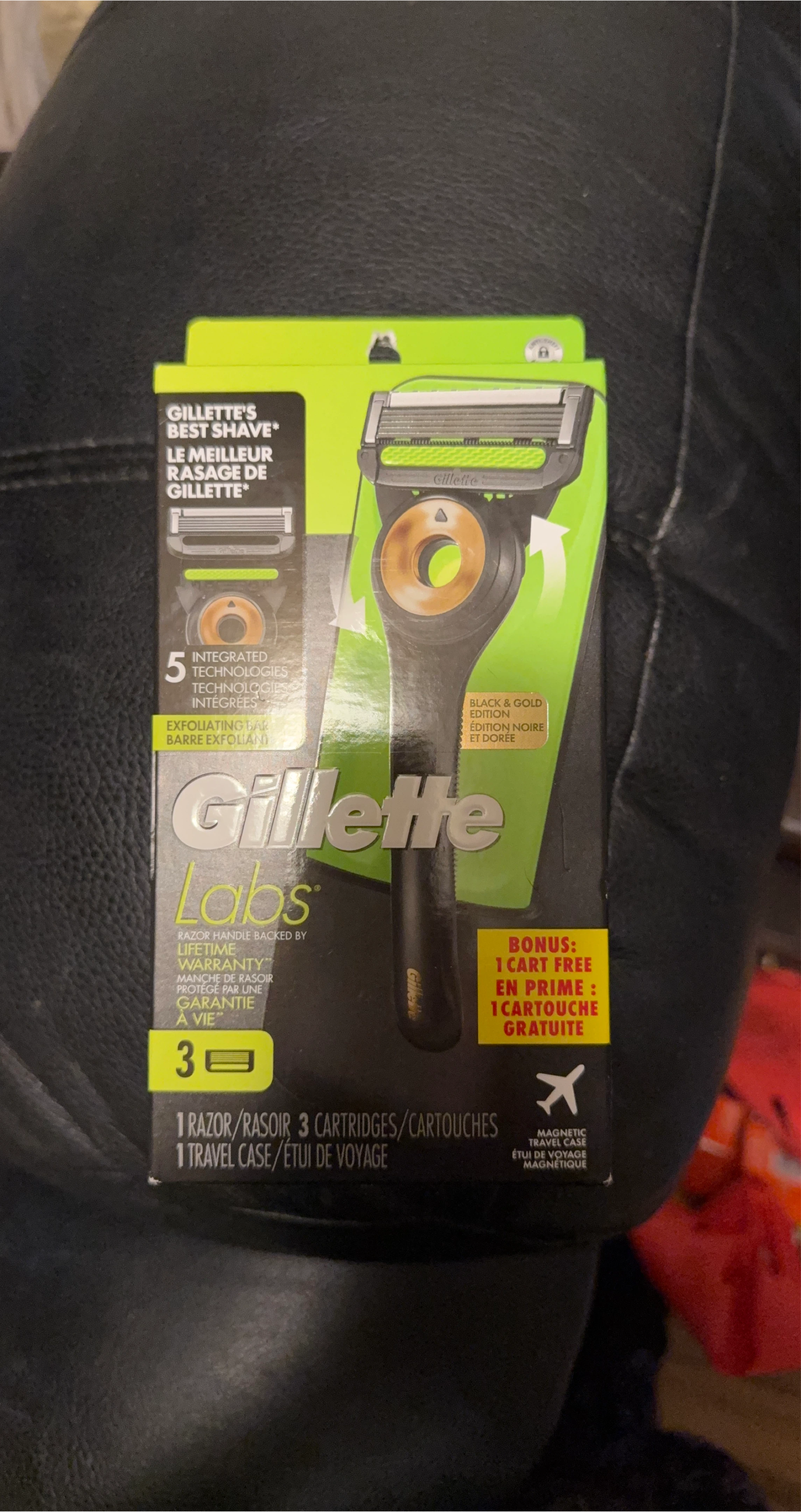 Selling a brand new GilletteLabs Black & Gold Edition razor! It comes with 3 cartridges and a magnetic travel case. The razor handle is backed by a lifetime warranty.