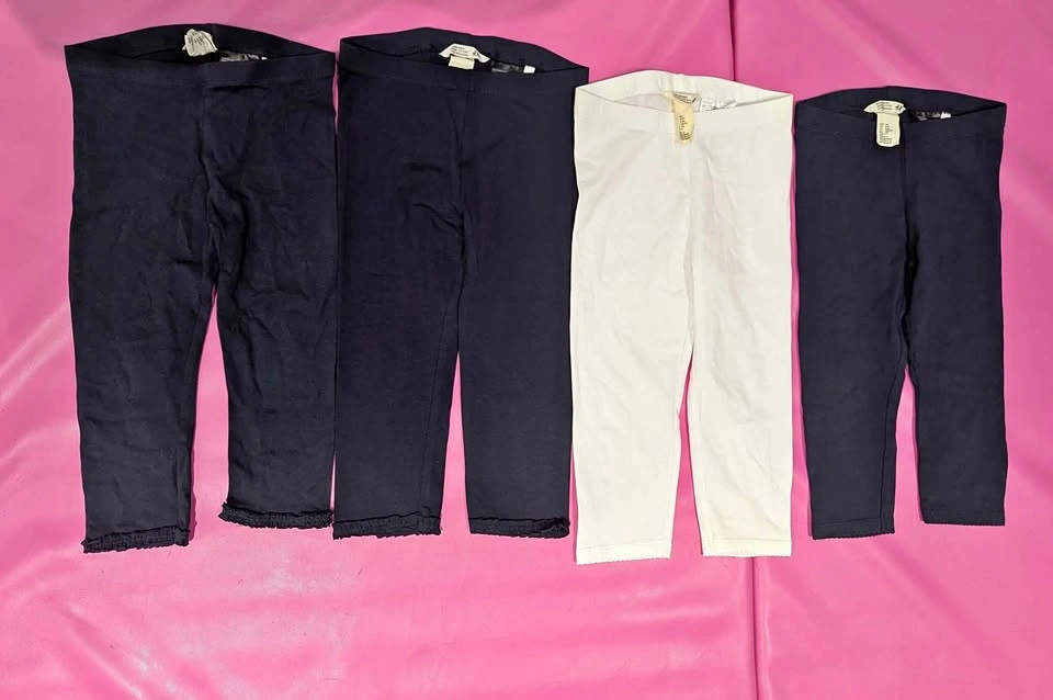 18H&M capri (3/4) organic cotton leggings size 4-5 ( 3 navy blue, 1 white) and navy blue chino pants. New, never worn, no tags. $5 each for leggings, $6 chino pants. All for $20. Pickup in Nobleton. Check out my other listings. I have a lot of kids stuff