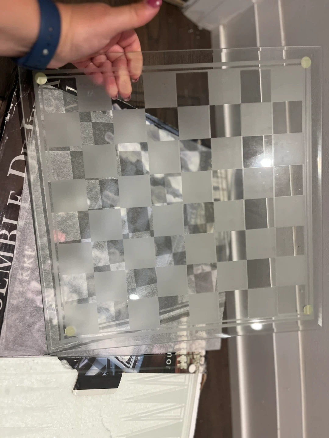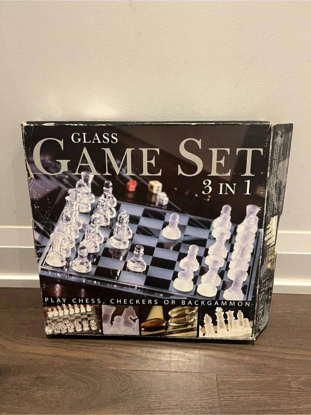 65Selling a glass game set that includes chess, checkers, and backgammon! The box is included, so it's easy to keep all the pieces together. Item is brand new, however some of the styrofoam packaging is broke. No chips or scratches on game pieces/boards.