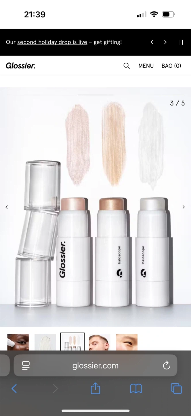 New, unused Glossier Haloscope dew effect highlighter in Moonstone. It's a lightweight highlighter stick that gives a subtle, dewy glow. Full size 0.19 oz / 5.5 g Pickup in Richmond, cash only.