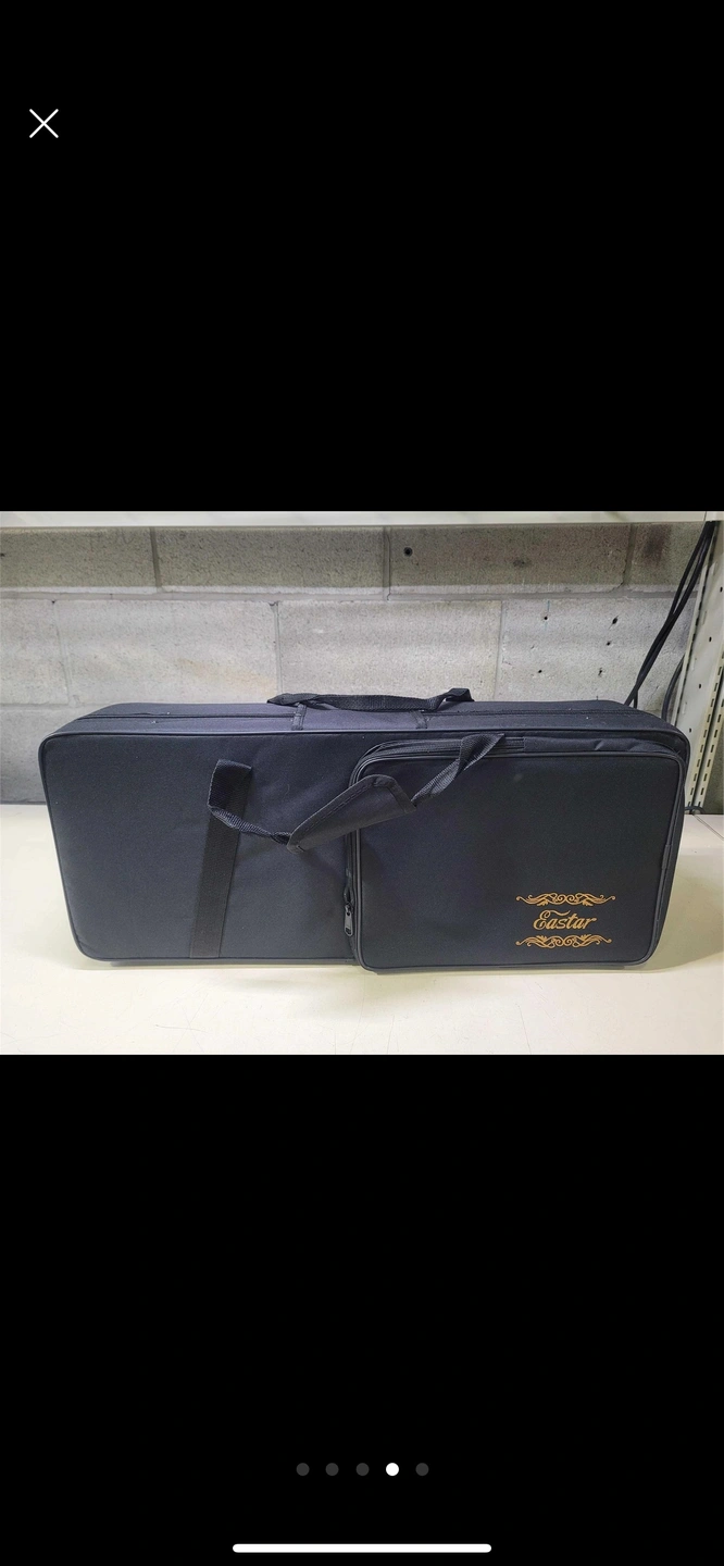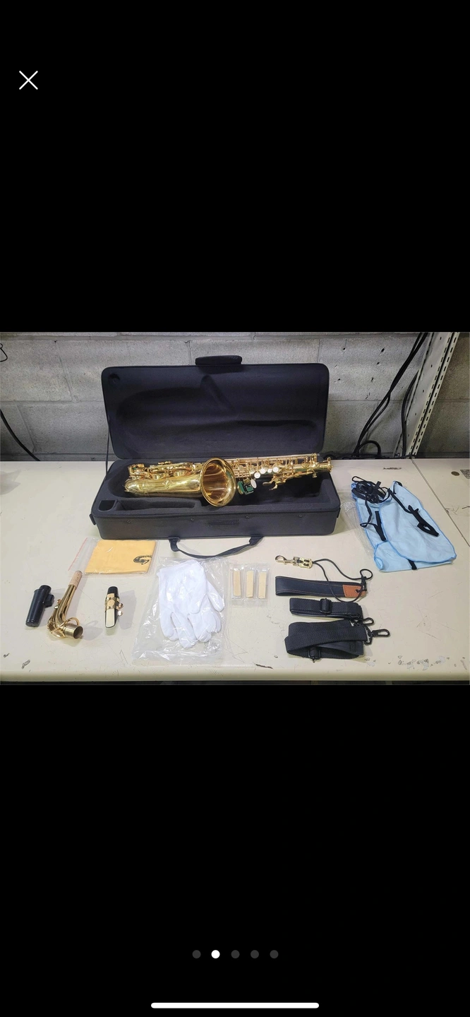 284Brand: Eastar Stunning new Student Alto Saxophone E Flat Gold Lacquer Alto Beginner Sax Full Kit With Carrying Sax Case Mouthpiece Straps Reeds Stand. Price Firm. Leslie/Hwy 401