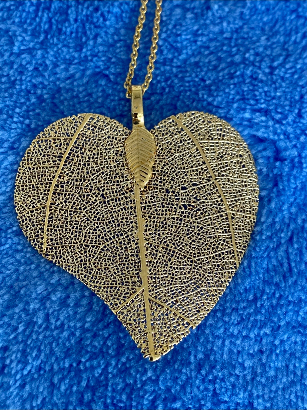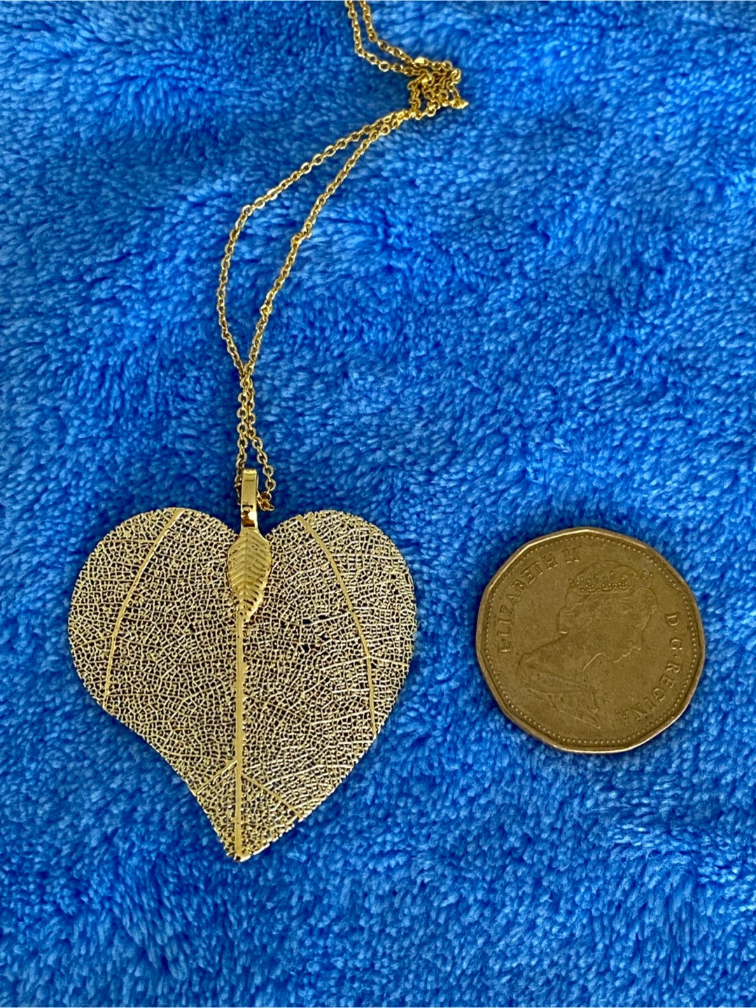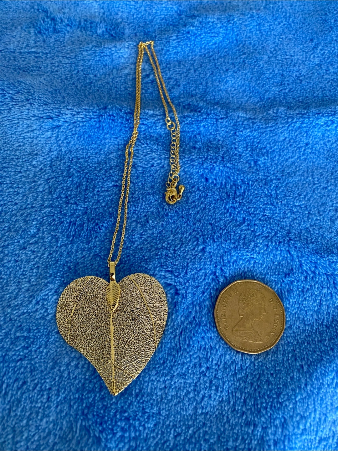 Selling a pretty gold heart-shaped leaf pendant necklace. The pendant is a real leaf plated by special technique. It's a brand new necklace and would make a lovely accessory! Pick up at Yonge and Bloor