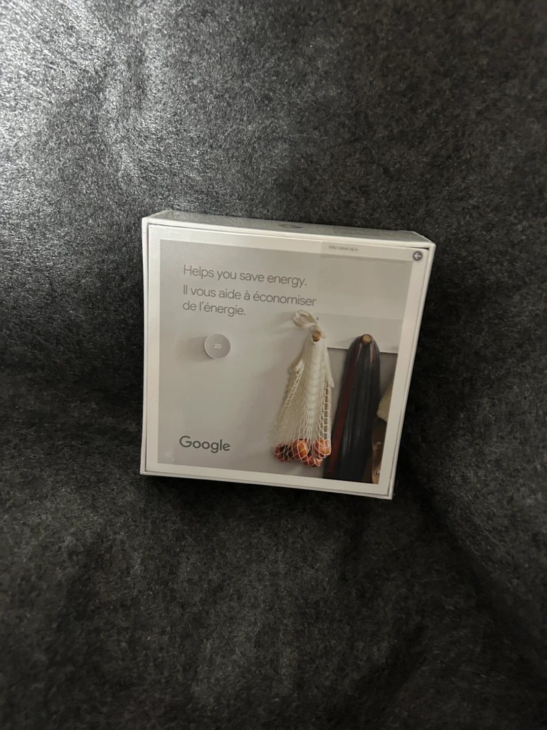 Selling a brand new Google Nest Thermostat! It helps you save energy and is still in its original packaging. Included in the box are the Nest Thermostat, two 1.5V AAA batteries, and a base plate.