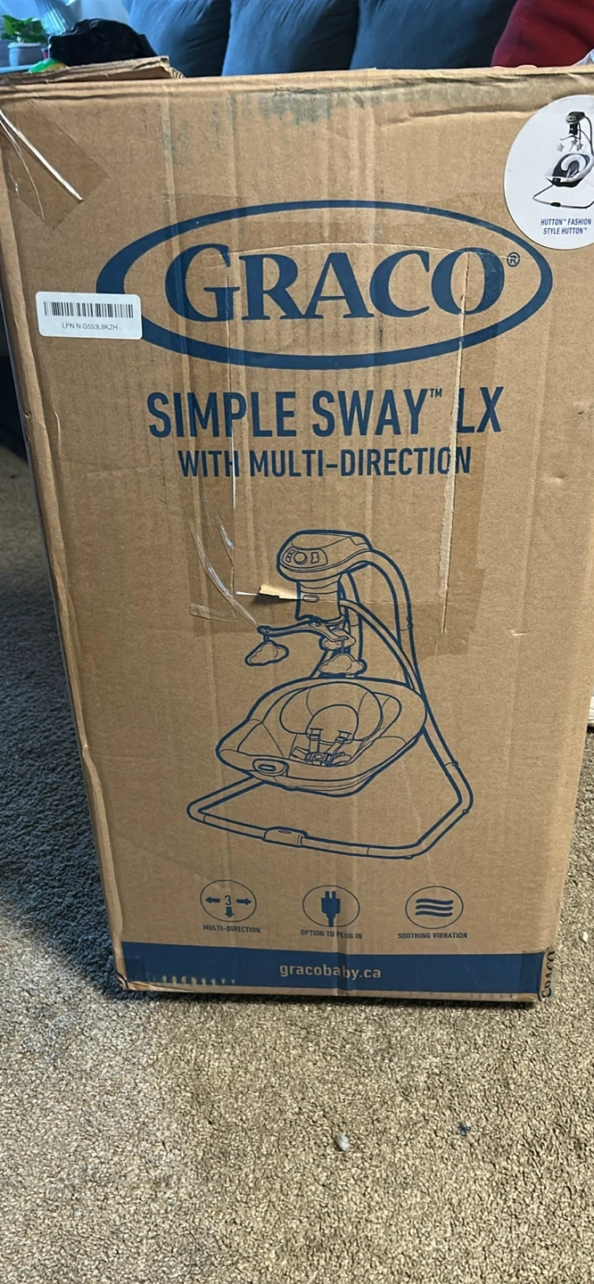 23Selling a Graco Simple Sway LX baby swing in brand new condition! It comes with multi-directional swinging options and soothing vibration to keep your little one comfy. It also has an option to plug it in. Comes with the original box!