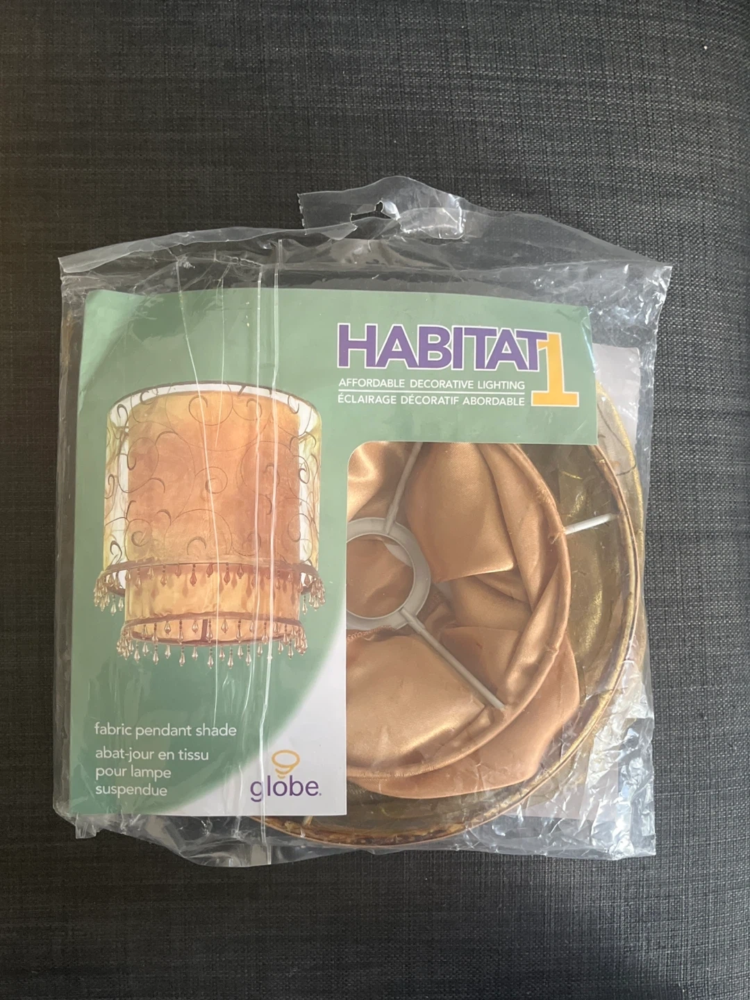 0Selling a brand new Habitat fabric pendant shade! It's still in its original packaging and ready to add a touch of elegance to your space. The shade requires a 1 A19, 60 watts bulb (sold separately). It measures 20 cm in diameter and 15 cm in height, perfect for indoor use only
