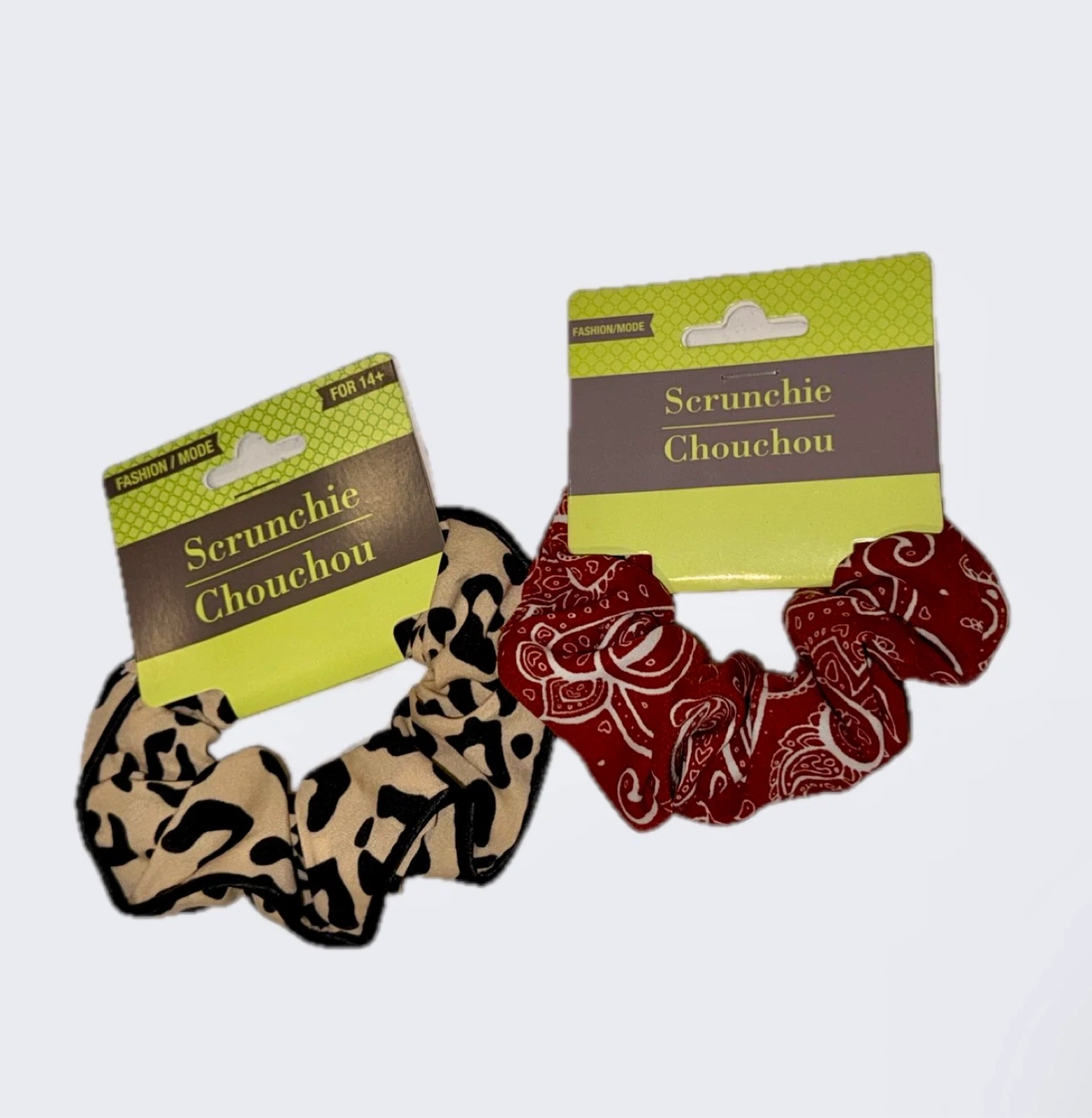 506Brand new 5 hair scrunchies 4 animal print (leopard, snake skin) 1 red paisley print Perfect condition, good quality, only selling because I have so many scrunchies that I’ve never used. Great little stocking stuffers!