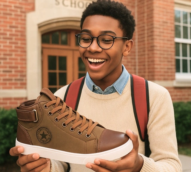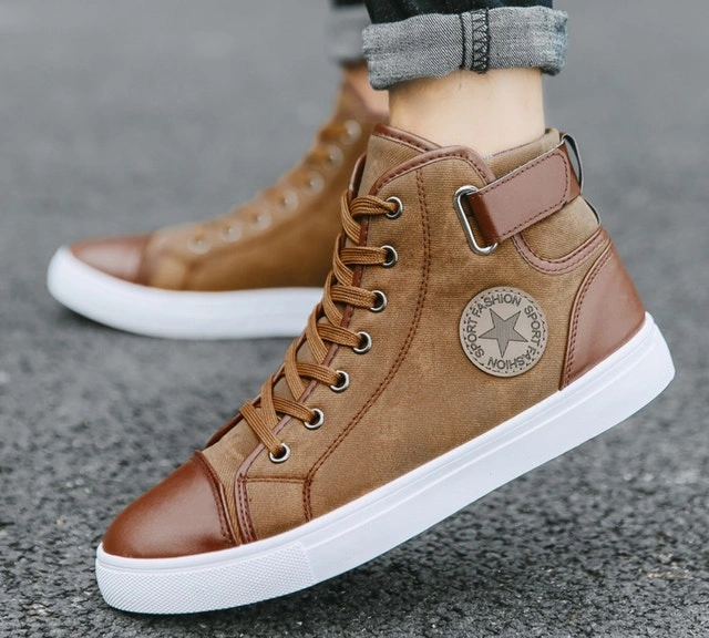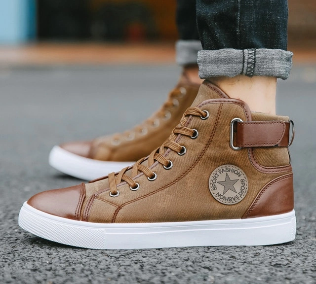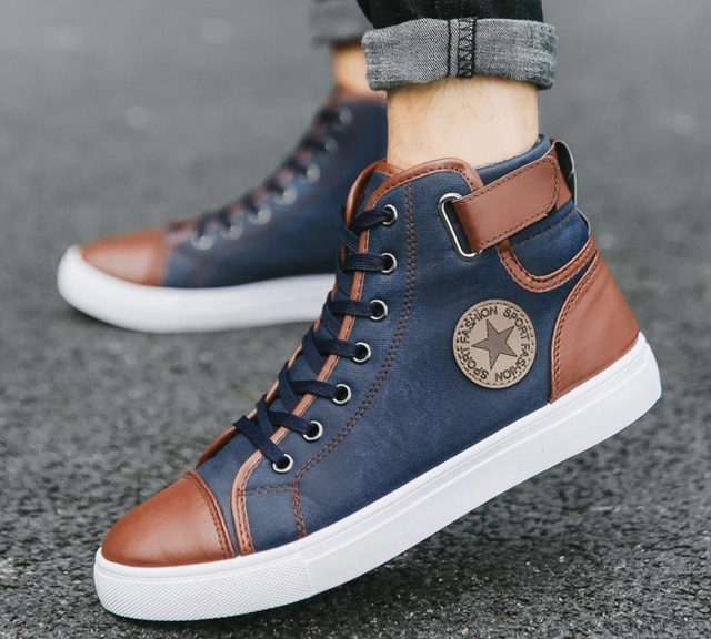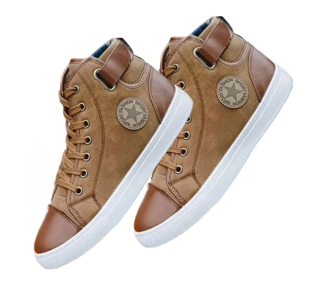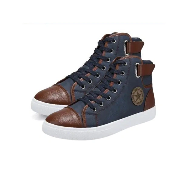 65These handmade high-top sneakers blend modern street style with timeless craftsmanship. Available in earthy tan and deep navy, they feature smooth leather accents. The stitched canvas body adds durability, while the adjustable strap and cushioned insole ensure a comfortable fit. Versatile and fashion-forward, these sneakers pair well with jeans, chinos, or a relaxed suit. Stylish and unique. BLUE AND BEIGE/BROWN HIGH-TOP SNEAKERS Sizes available: 8, 9, and 10 (limited supply). No half sizes. Brand new shoes with box. Retail $115, Sale - $75. Pick-up only upon cash purchase. No trades. Serious buyers only. Thank you! Disclaimer: Colour shades may differ slightly from photos.