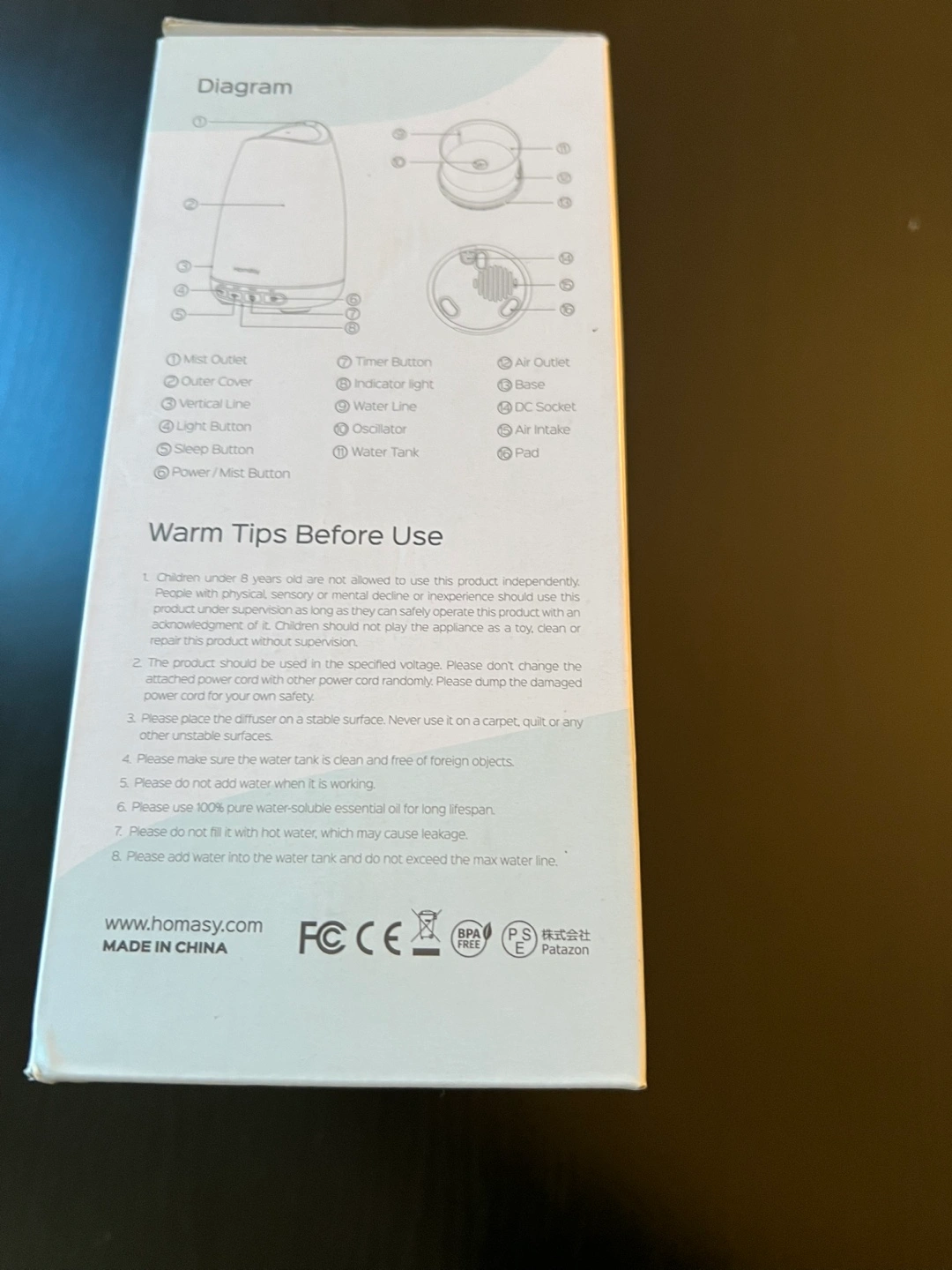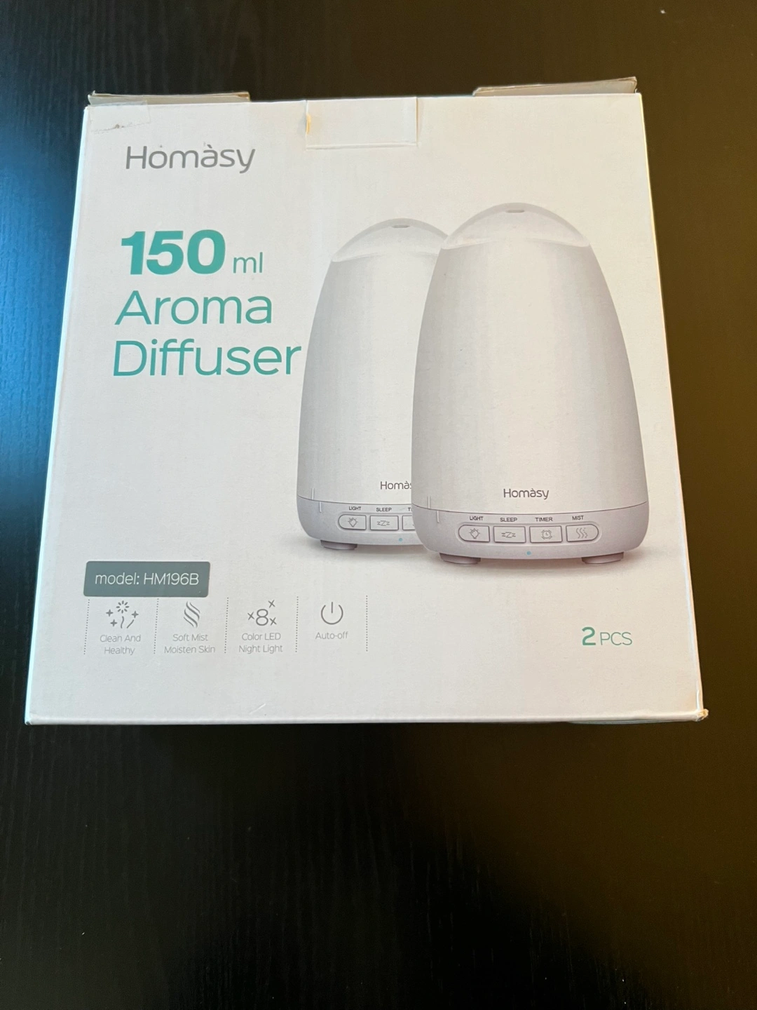 52Brand new, unopened box of two Homasy 150ml aroma diffusers. Features soft mist, colour changing LED lights, and auto-off function. Pick up in Port Coquitlam