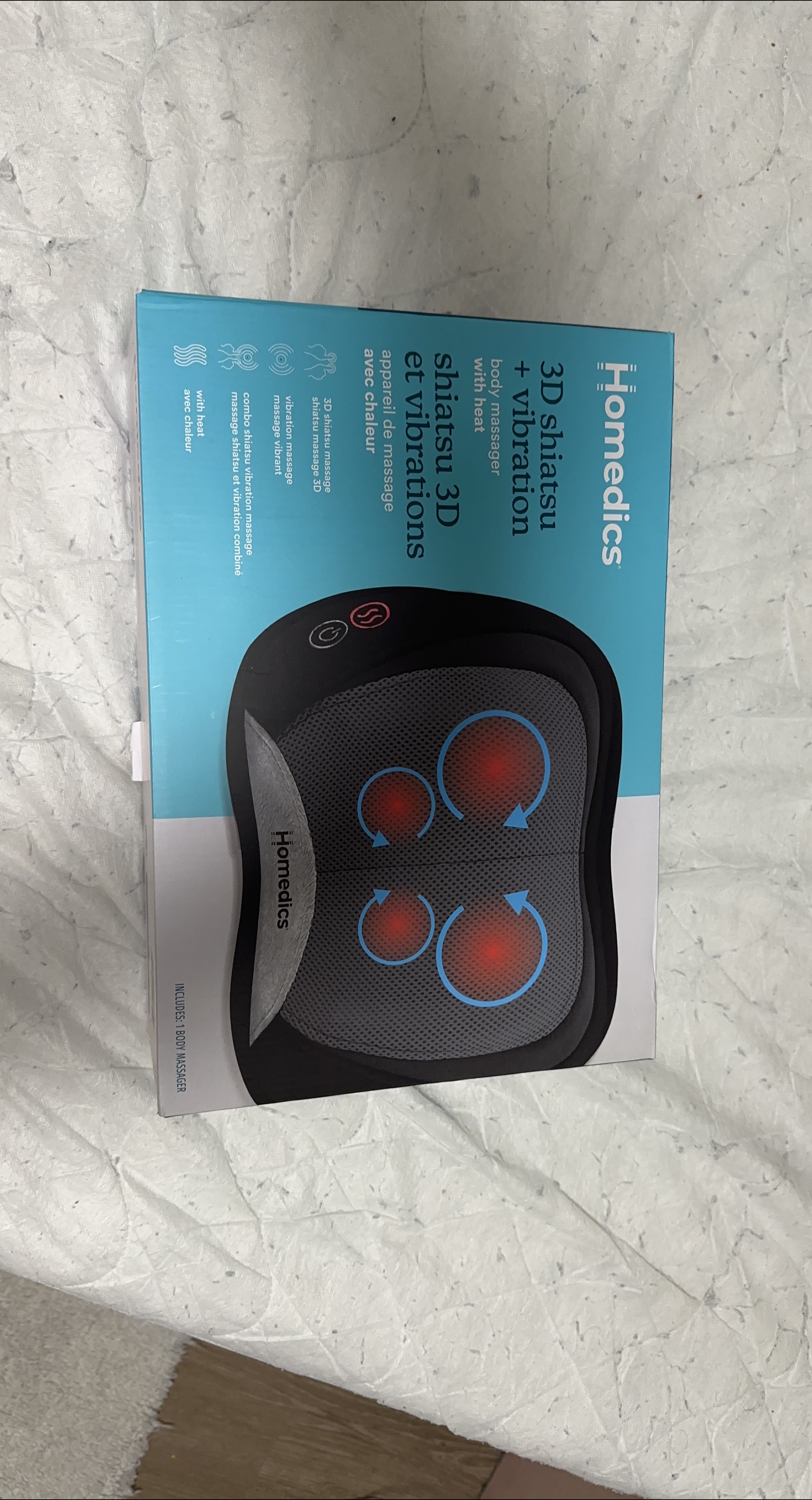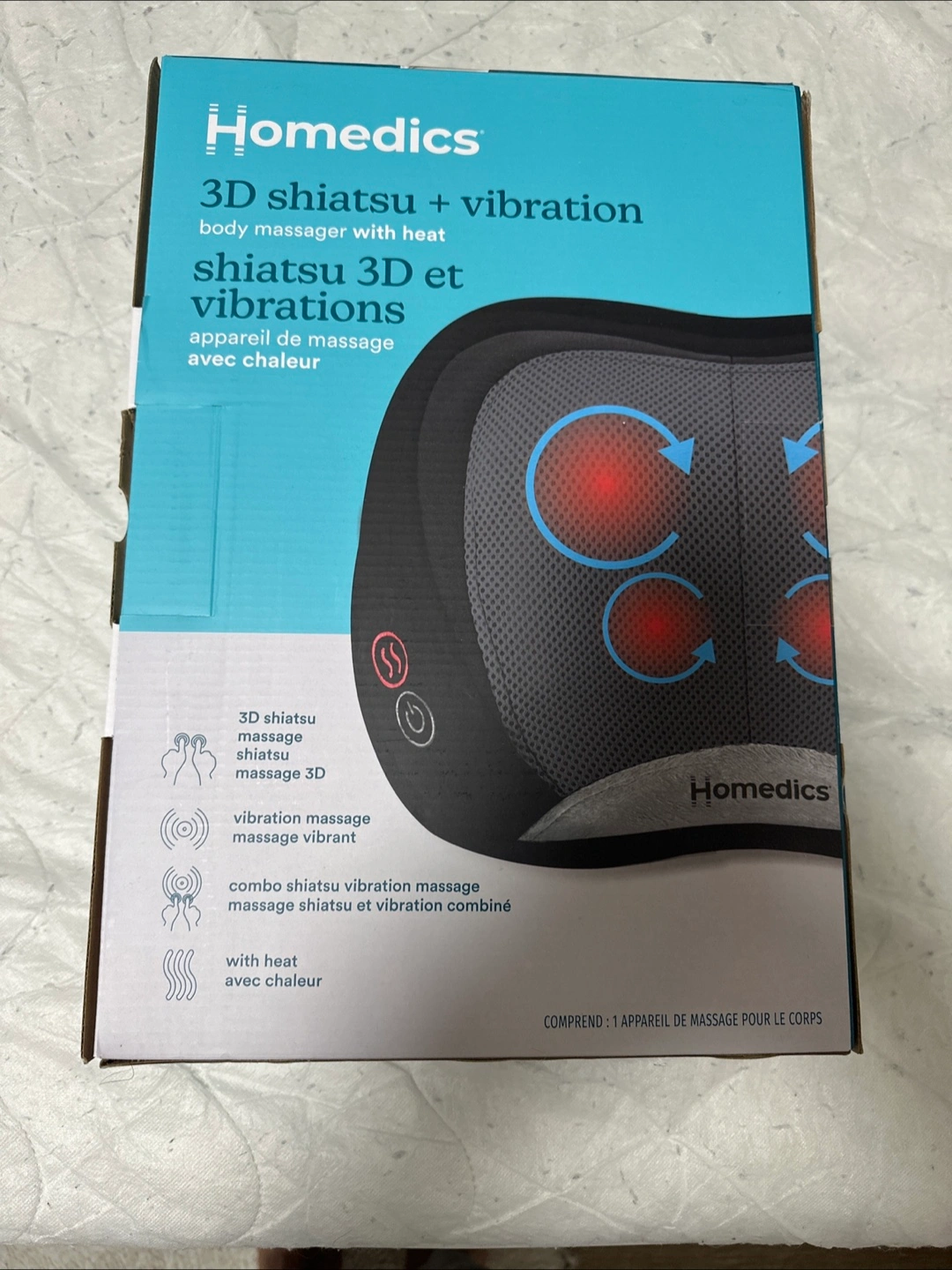 I'm selling a brand new HoMedics 3D Shiatsu + Vibration body massager with heat! It's still in the original box not used. This massager features 3D shiatsu and vibration for a relaxing massage experience. It includes vibration massage and combo shiatsu vibration massage with heat. Treat yourself to some relaxation!